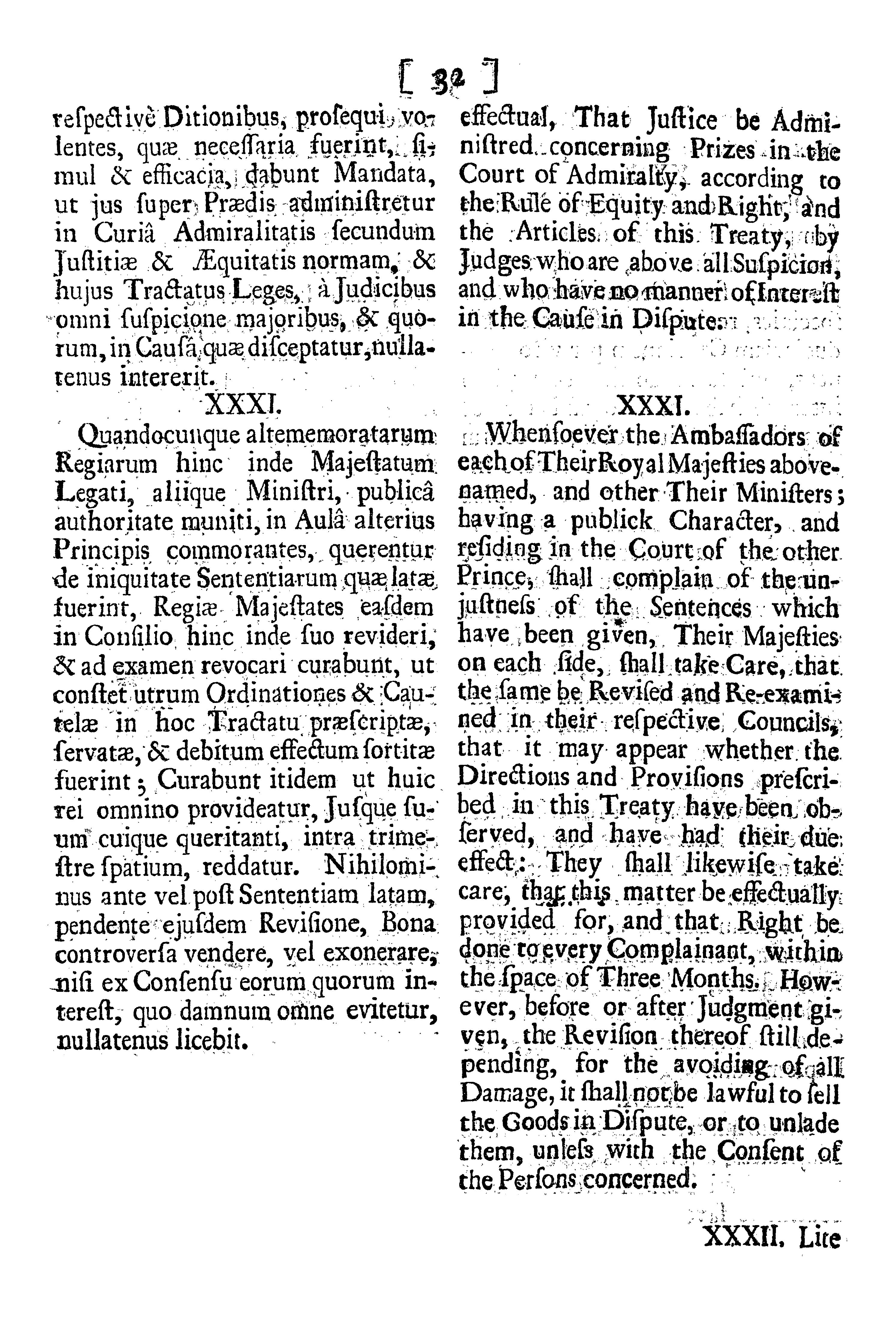 Tractatus navigationis et commerciorum : inter Serenissimam ac Potentissimam Principem Annam, Dei Gratia, Magnæ Britanniæ, Franciæ, & Hibernæ, Reginam, & Serenissimum ac Potentissimum Principem Ludovicum XIV, Dei Gratia, Regem Christianissimum, conclusus trajecti ad Rhenum die 31 Martii/11 Aprils anno 1713 = Treaty of navigation and commerce : between the Most Serene and Most Potent Princess Anne, by the Grace of God, Queen of Great Britain, France, and Ireland, and the Most Potent Prince Lewis the XIVth, the Most Christian king, concluded at Utrecht the 31/11 day of March/April 1713. - Adresse bibliographique