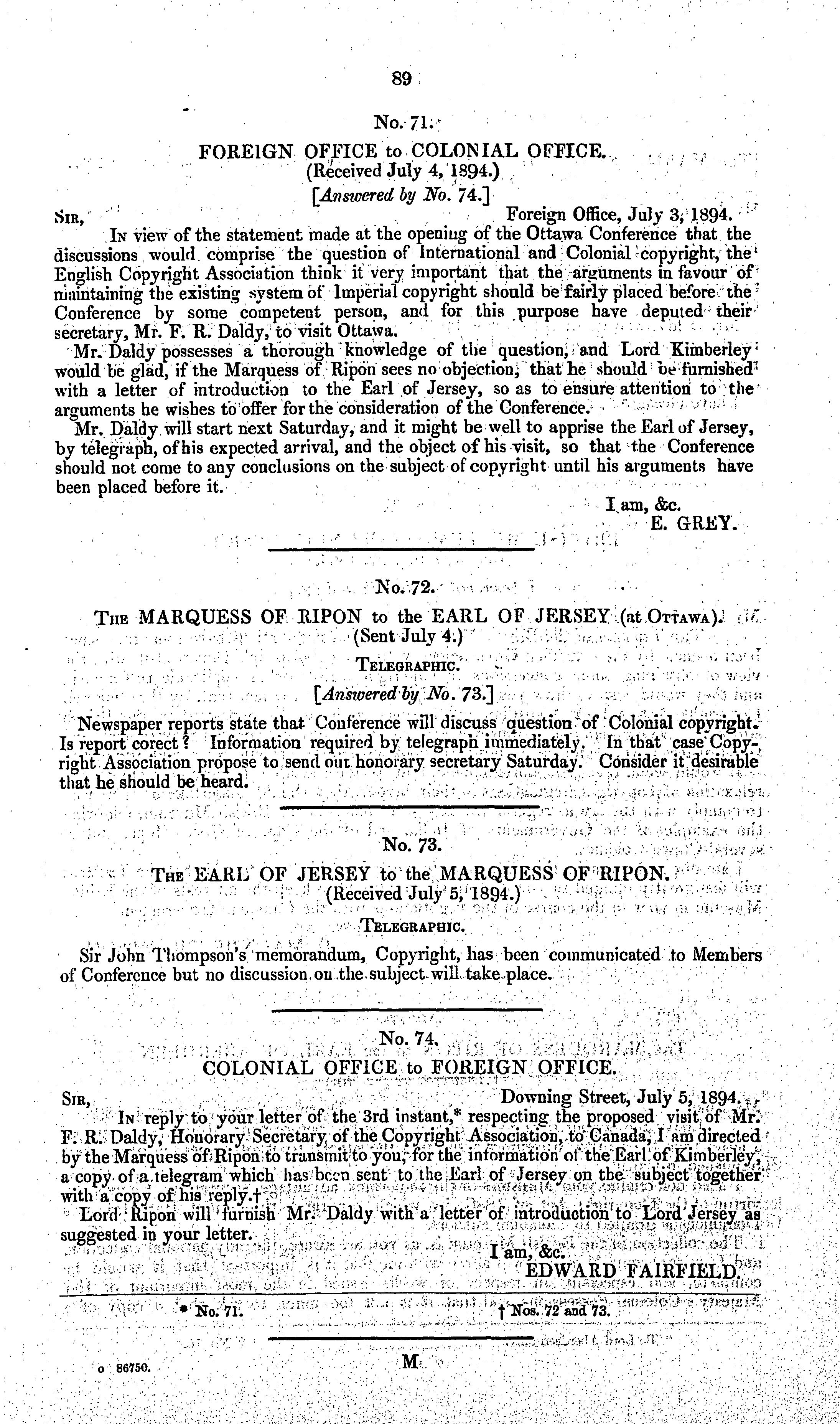 Canada : correspondence on the subject of the law of copyright in Canada. - Published