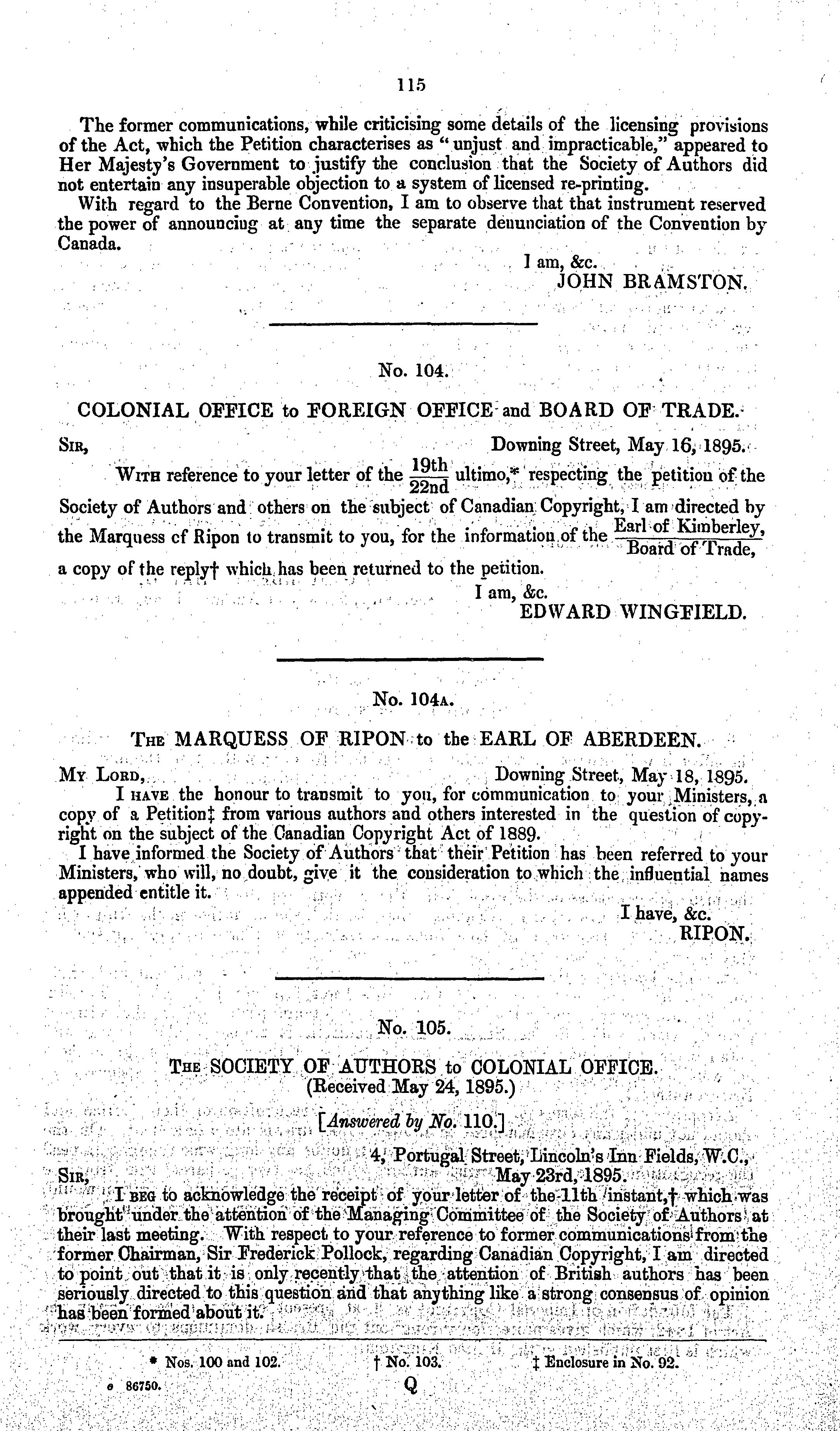 "Presented to both Houses of Parliament by Command of Her Majesty. June 27, 1895."