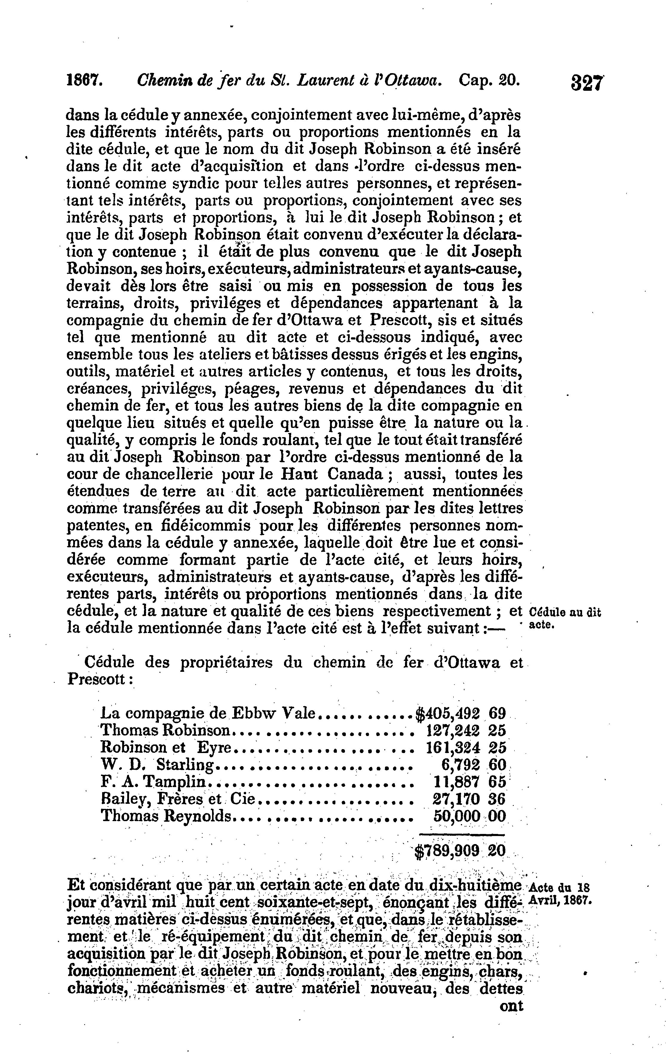 Statuts du Canada passés dans la trente-et-unième année du règne de Sa Majesté la Reine Victoria et dans la première session du premier Parlement du Canada : commencée et tenue à Ottawa le sixième jour de novembre, en l'année de Notre Seigneur mil huit cent soixante-et-sept : 1867 (ptie 1) (Actes 1-21)