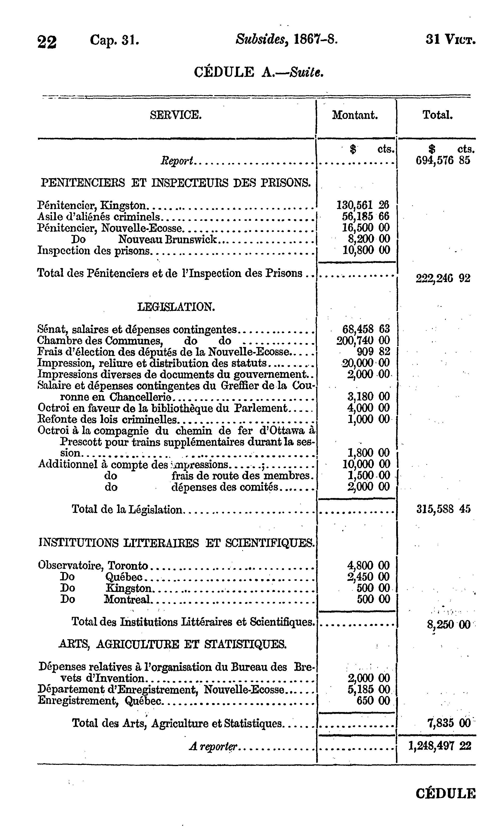 Statuts du Canada : Statuts du Canada passés dans la trente-et-unième année du règne de Sa Majesté la Reine Victoria et dans la première session du premier Parlement du Canada : commencée et tenue à Ottawa le sixième jour de novembre, et ajournée le 21 décembre, 1867 au douze mars suivant : deuxième partie du 12 mars, 1868 : 1867/68 (ptie 2) (Actes 22-93)