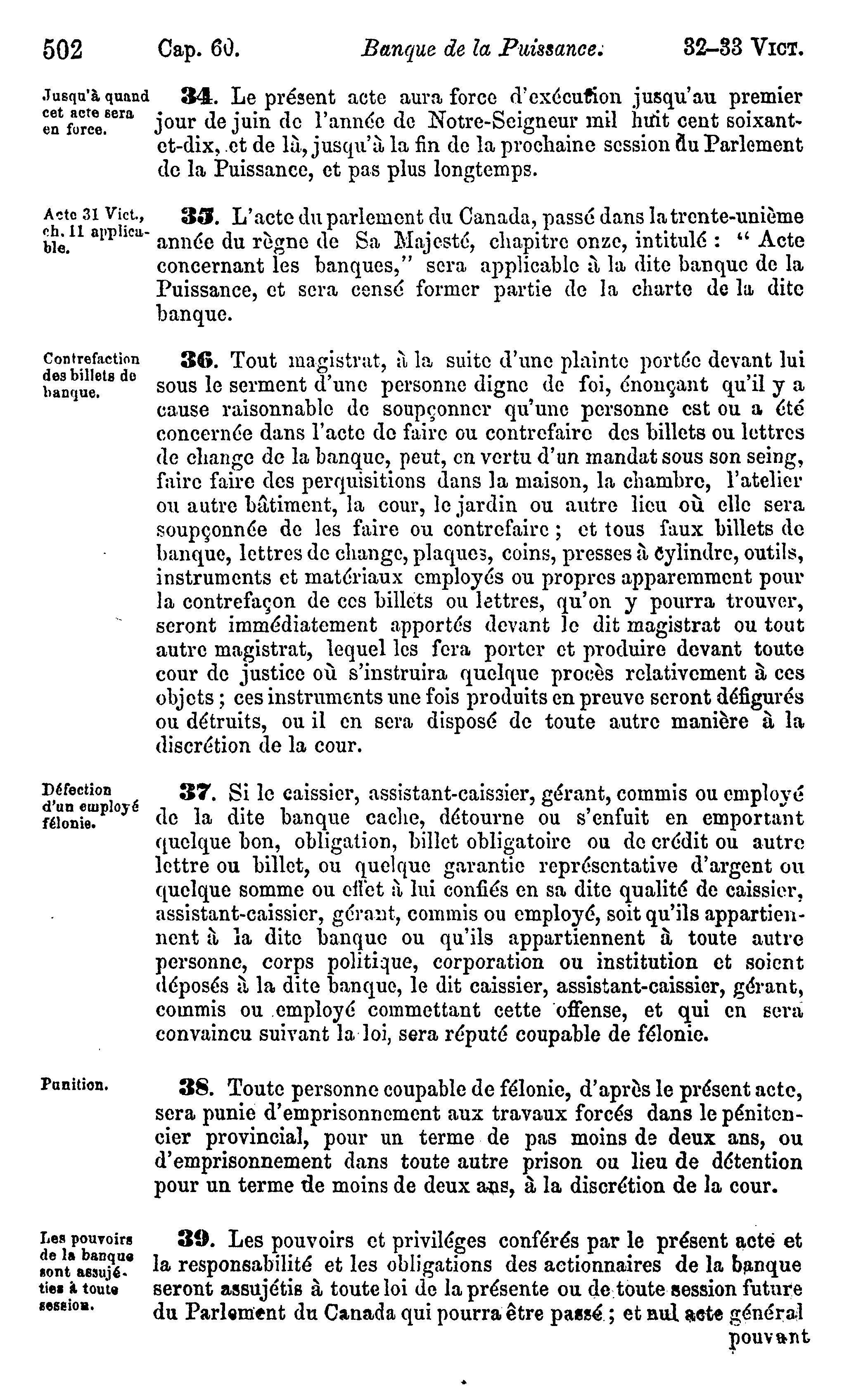 Statuts du Canada passés dans la session tenue dans les trente-deuxième et trente-toisième année du règne de Sa Majesté la Reine Victoria, étant la seconde sesson du premier parlement du Canada : commencée et tenue à Ottawa le quinzième jour d'avril 1869, et ajournée par prorogation le vingt-deuxième jour de juin, dans la même année