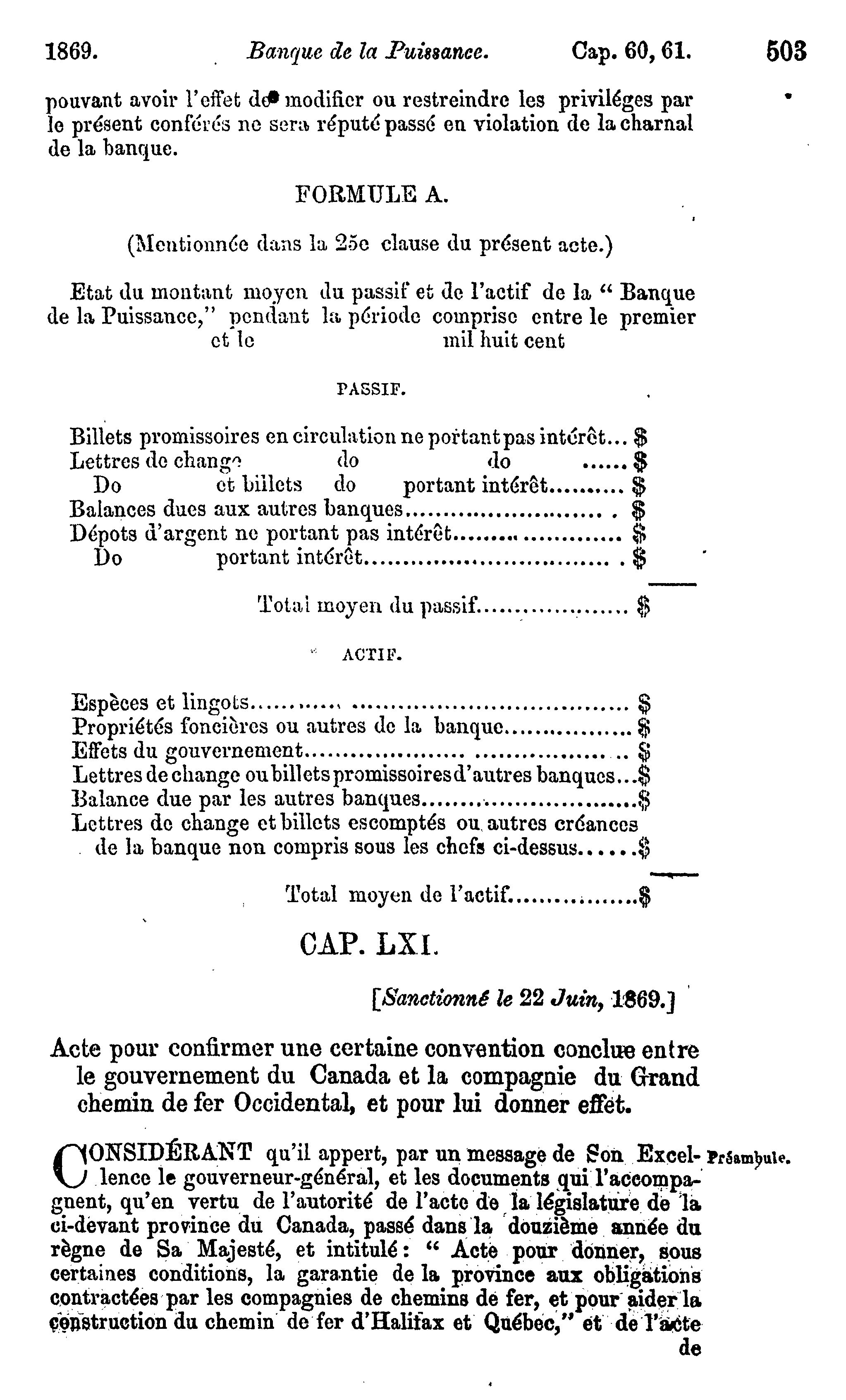 [Statuts du Canada passés dans la session tenue dans les trente-deuxième et trente-toisième année du règne de Sa Majesté la Reine Victoria, étant la seconde sesson du premier parlement du Canada : commencée et tenue à Ottawa le quinzième jour d'avril 1869, et ajournée par prorogation le vingt-deuxième jour de juin, dans la même année