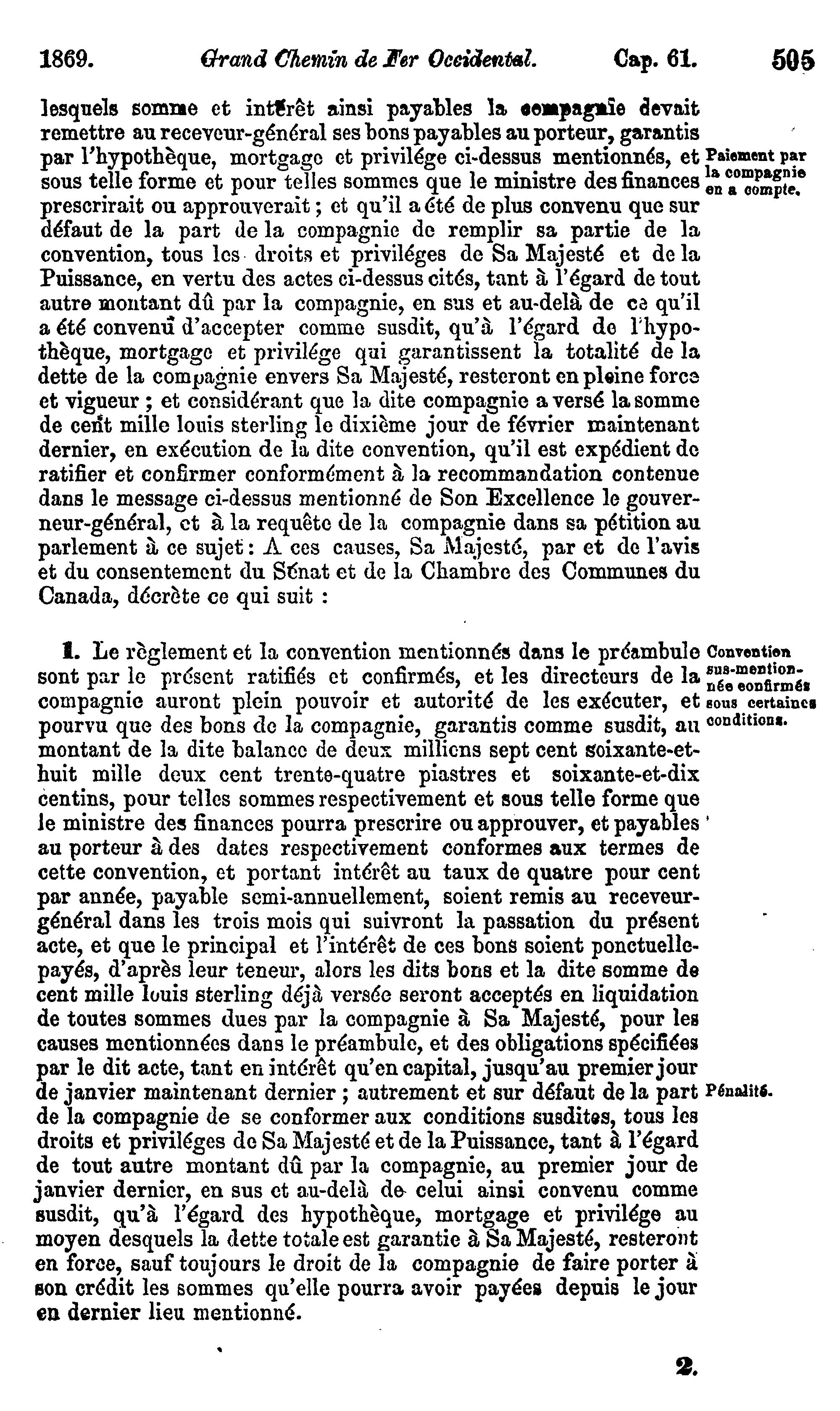 Statuts du Canada passés dans la session tenue dans les trente-deuxième et trente-toisième année du règne de Sa Majesté la Reine Victoria, étant la seconde sesson du premier parlement du Canada : commencée et tenue à Ottawa le quinzième jour d'avril 1869, et ajournée par prorogation le vingt-deuxième jour de juin, dans la même année
