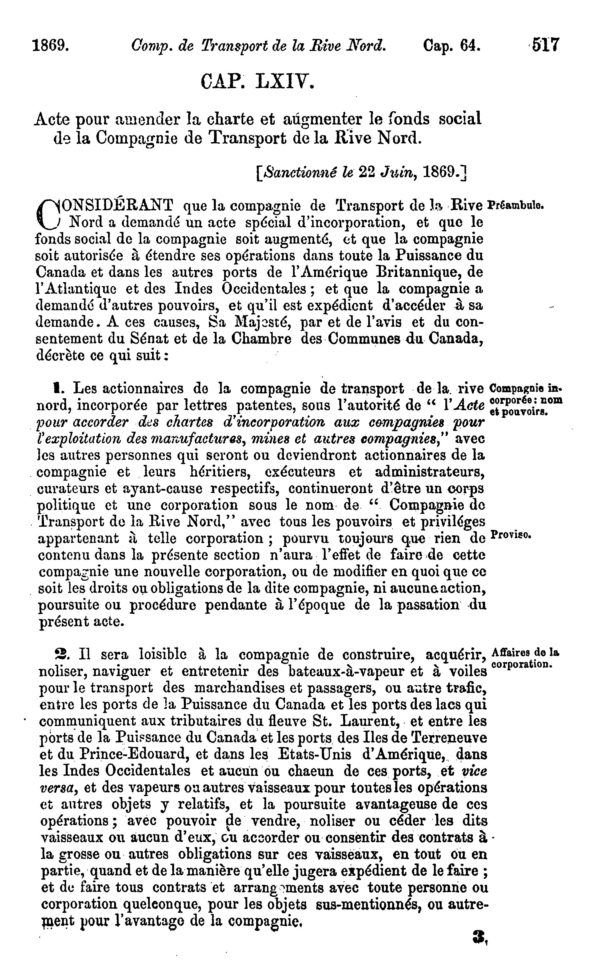 [Statuts du Canada passés dans la session tenue dans les trente-deuxième et trente-toisième année du règne de Sa Majesté la Reine Victoria, étant la seconde sesson du premier parlement du Canada : commencée et tenue à Ottawa le quinzième jour d'avril 1869, et ajournée par prorogation le vingt-deuxième jour de juin, dans la même année