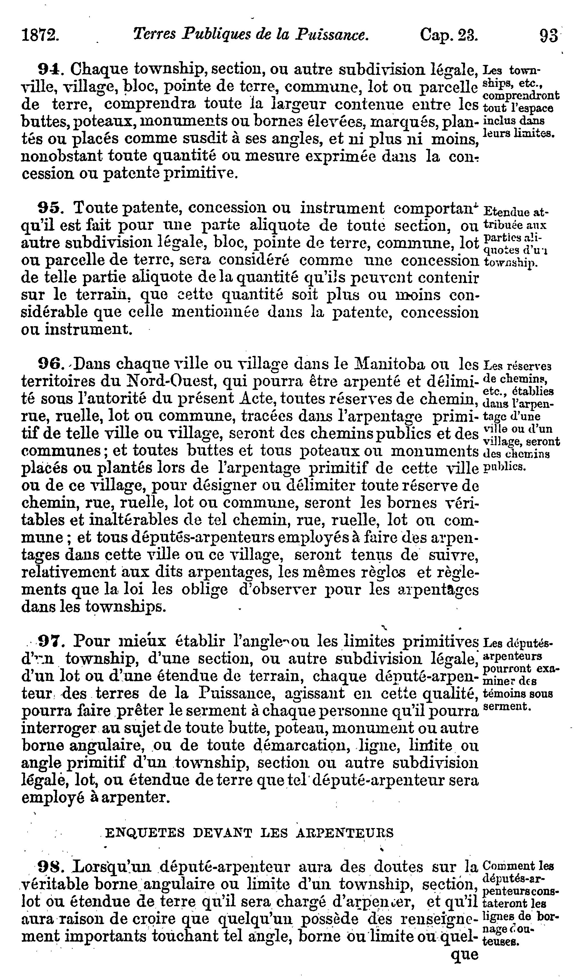 Statuts du Canada passés dans la session tenue dans la trente-cinquième année du règne de Sa Majesté la Reine Victoria, étant la cinquième session du premier parlement du Canada : commencée et tenue à Ottawa le onzième jour d'avril 1872, et ajournée par prorogation le quatorzième jour de juin dans la même année : 1872 (Actes 1-118)