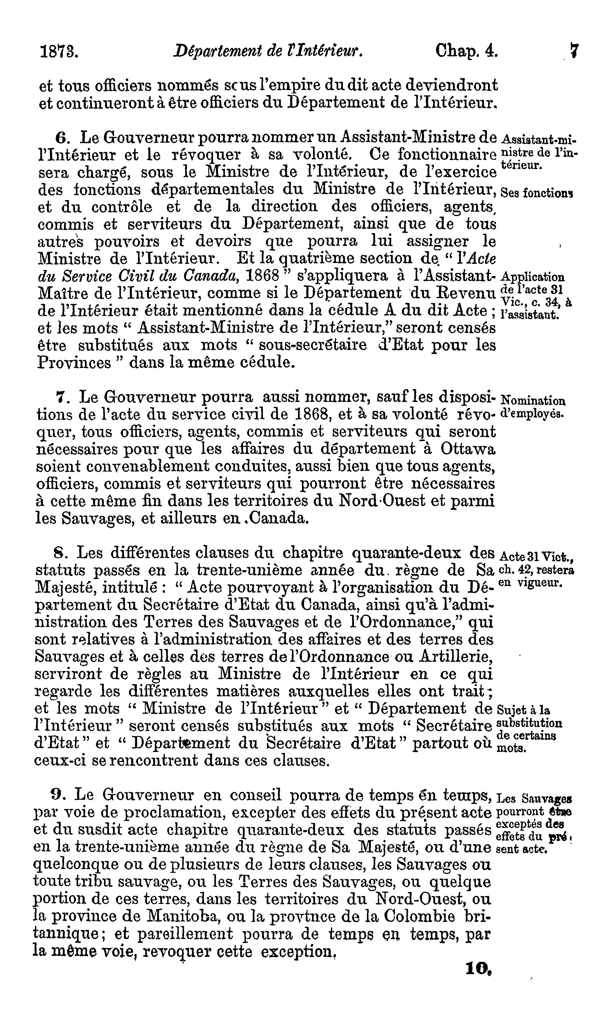 Actes du parlement de la puissance du Canada passés dans la trente-sixième année du règne de Sa Majesté la Reine Victoria, et dans la première session du deuxième parlement, commencée et tenue à Ottawa, le cinquième jour de mars, et fermée par prorogation le treizième jour d'août 1873 : 1873 (Actes 1-126)