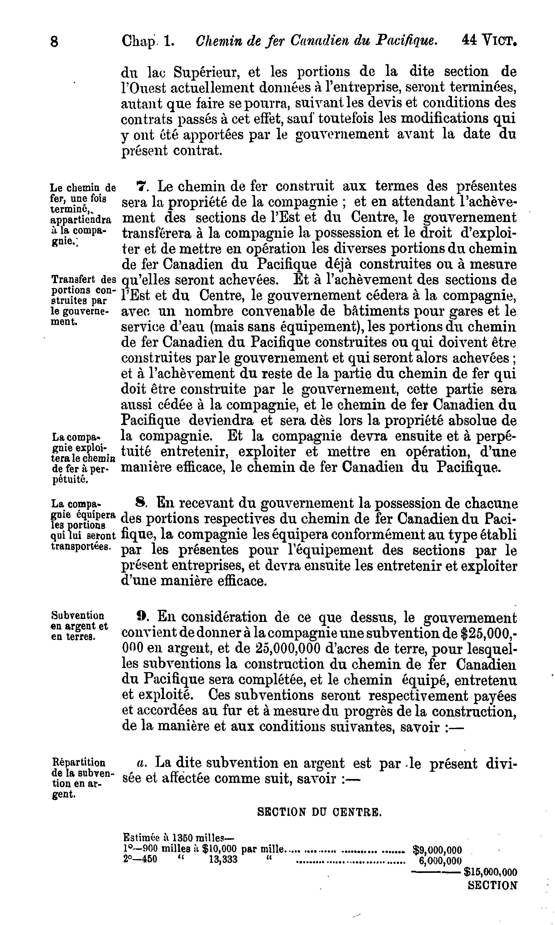 Actes du parlement de la puissance du Canada passés dans la quarante-quatrième année du règne de Sa Majesté, la Reine Victoria, et dans la troisième session du quatrième parlement : commencée et tenue à Ottawa, le neuvième jour de décembre 1880, et fermée par prorogation le vingt-unième jour de mars 1881 : actes publics généraux : 1880/81 (ptie 1) (Actes 1-33)