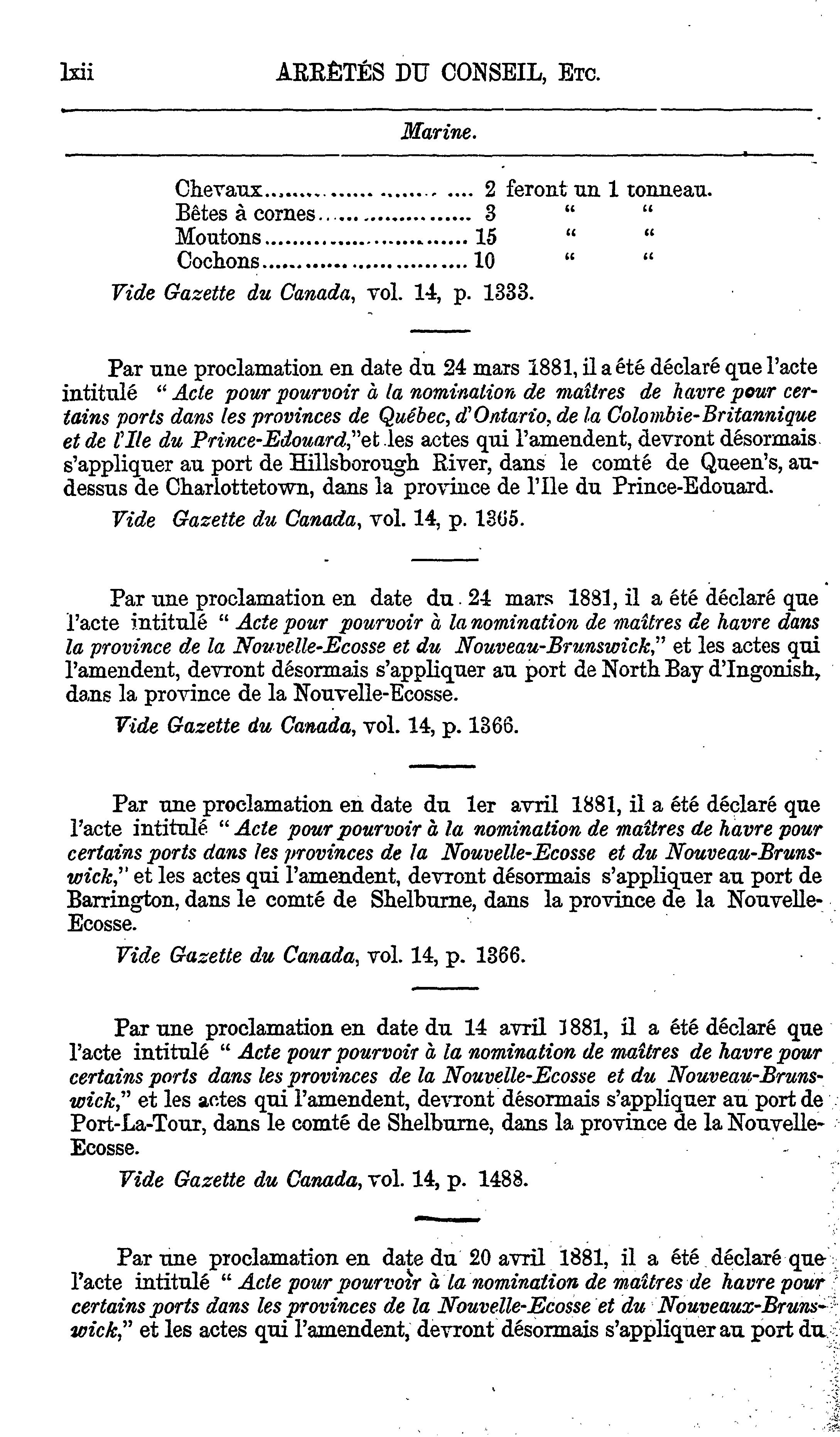 Actes du parlement de la puissance du Canada passés dans la quarante-cinquième année du règne de Sa Majesté, la Reine Victoria, et dans la quatrième session du quatrième parlement : commencée et tenue à Ottawa, le neuvième jour de février, et fermée par prorogation le dix-septième jour de mai 1882 : actes publics généraux : 1882 (ptie 1) (Actes 1-55)