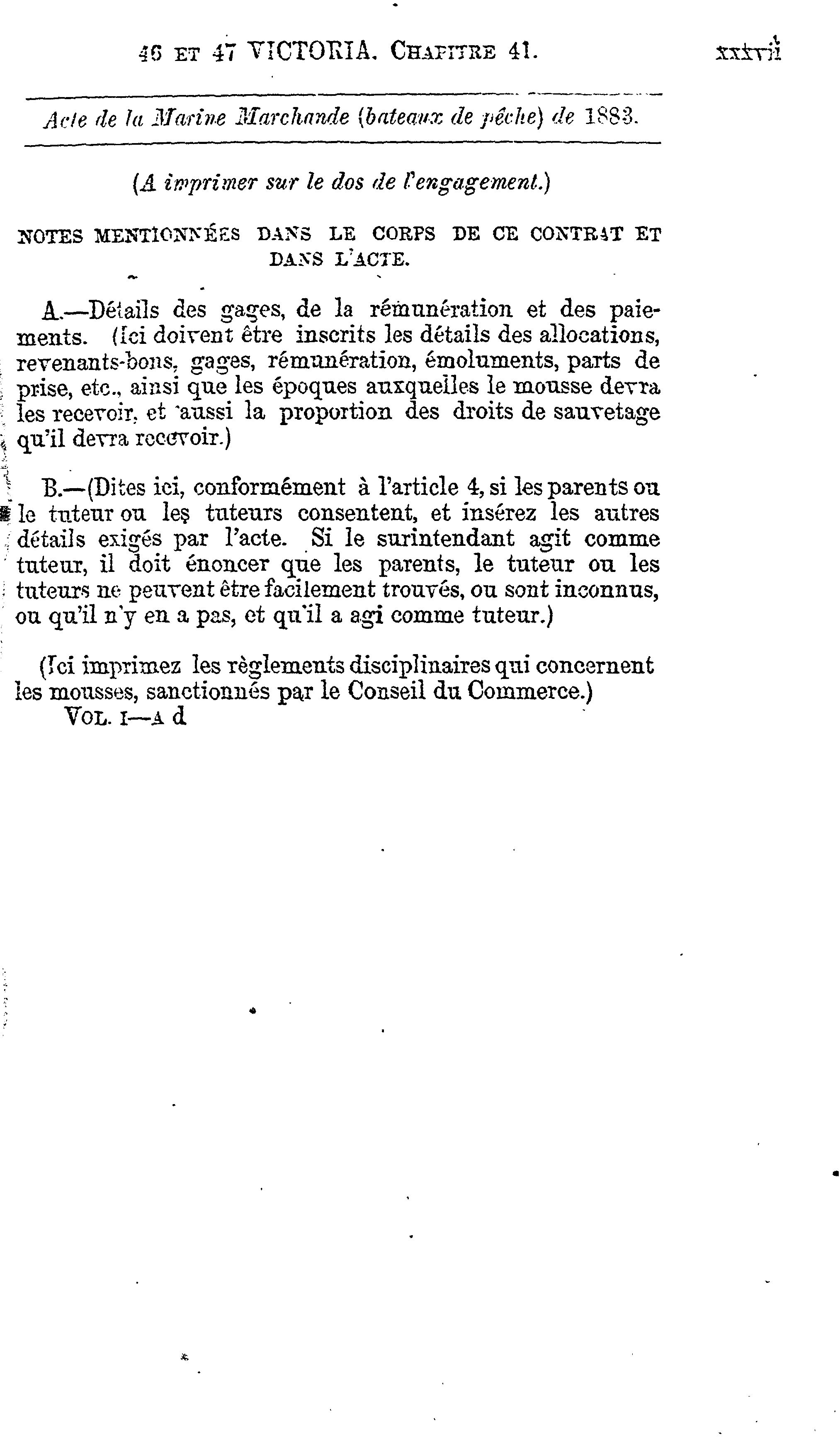 Actes du parlement de la puissance du Canada passés dans la quarante-septième année du règne de Sa Majesté, la Reine Victoria, et dans la deuxième session du cinquième parlement : commencée et tenue à Ottawa, le dix-septième jour de janvier et fermée par prorogation le dix-neuvième jour d'avril 1884 : actes publics généraux : 1884 (ptie 1) (Actes 1-45)