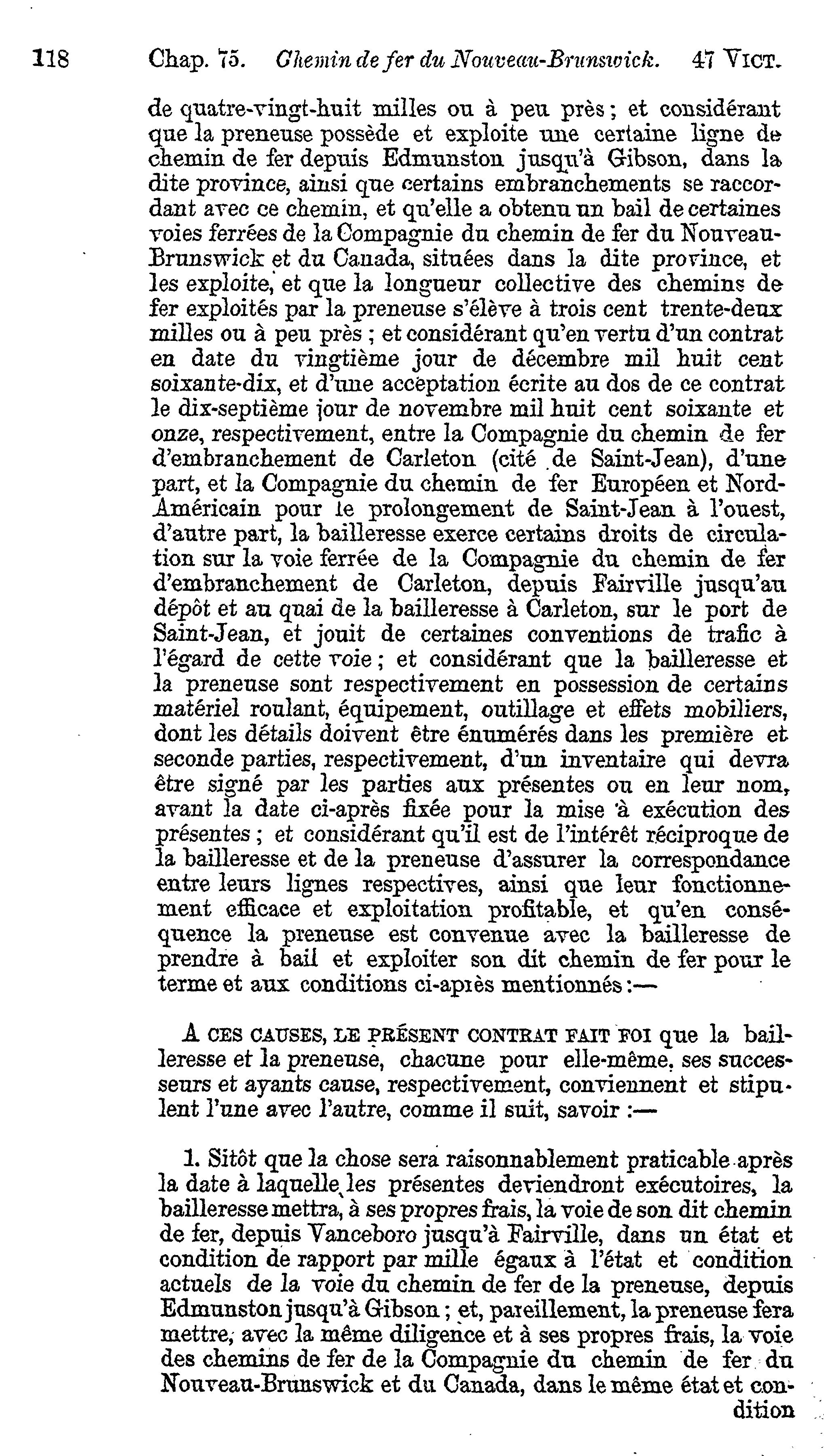 Actes du parlement de la puissance du Canada passés dans la quarante-septième année du règne de Sa Majesté, la Reine Victoria, et dans la deuxième session du cinquième parlement : commencée et tenue à Ottawa, le dix-septième jour de janvier et fermée par prorogation le dix-neuvième jour d'avril 1884 : actes locaux et privés : 1884 (ptie 2) (Actes 46-107)