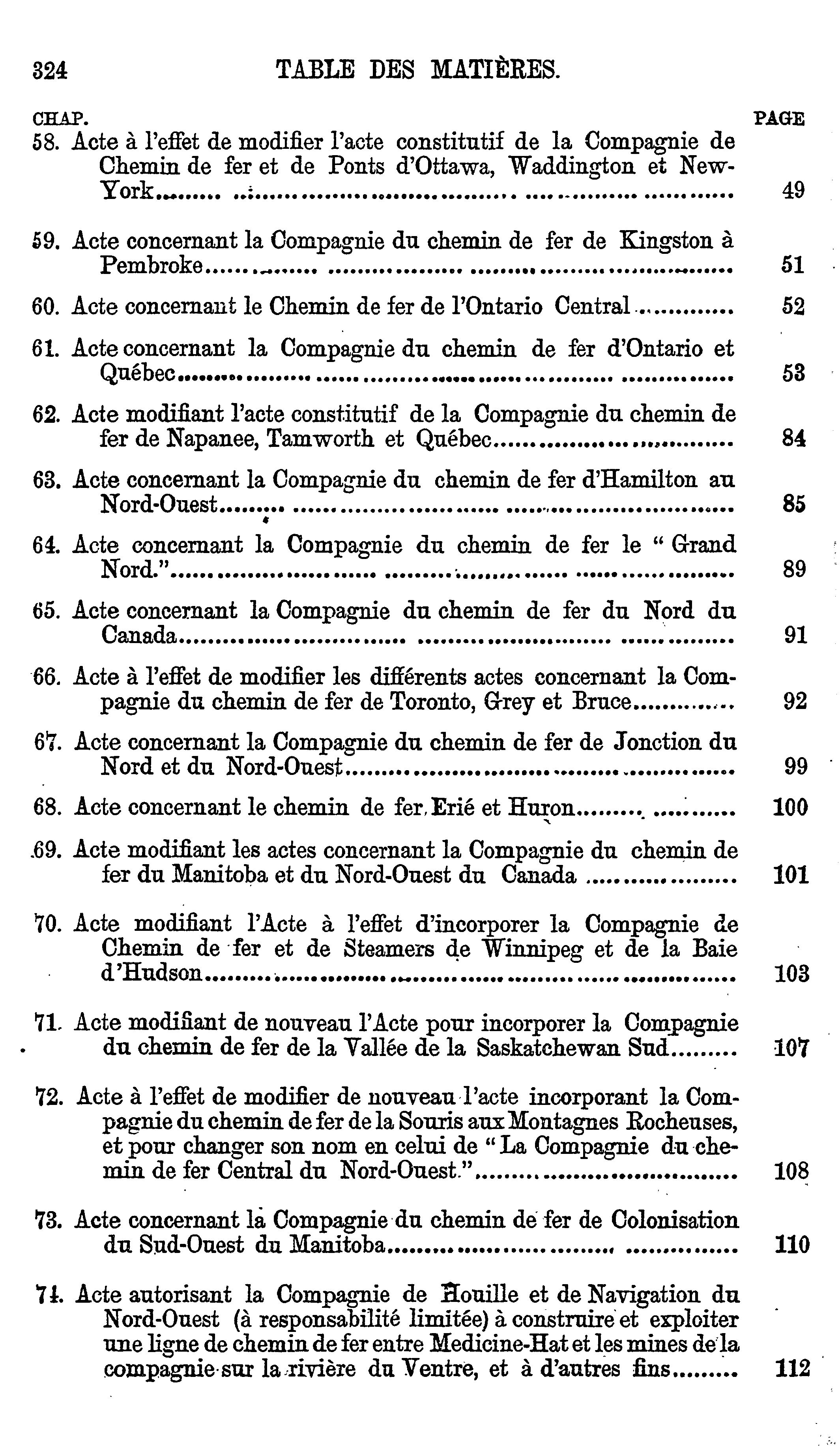 Actes du parlement de la puissance du Canada passés dans la quarante-septième année du règne de Sa Majesté, la Reine Victoria, et dans la deuxième session du cinquième parlement : commencée et tenue à Ottawa, le dix-septième jour de janvier et fermée par prorogation le dix-neuvième jour d'avril 1884 : actes locaux et privés : 1884 (ptie 2) (Actes 46-107)