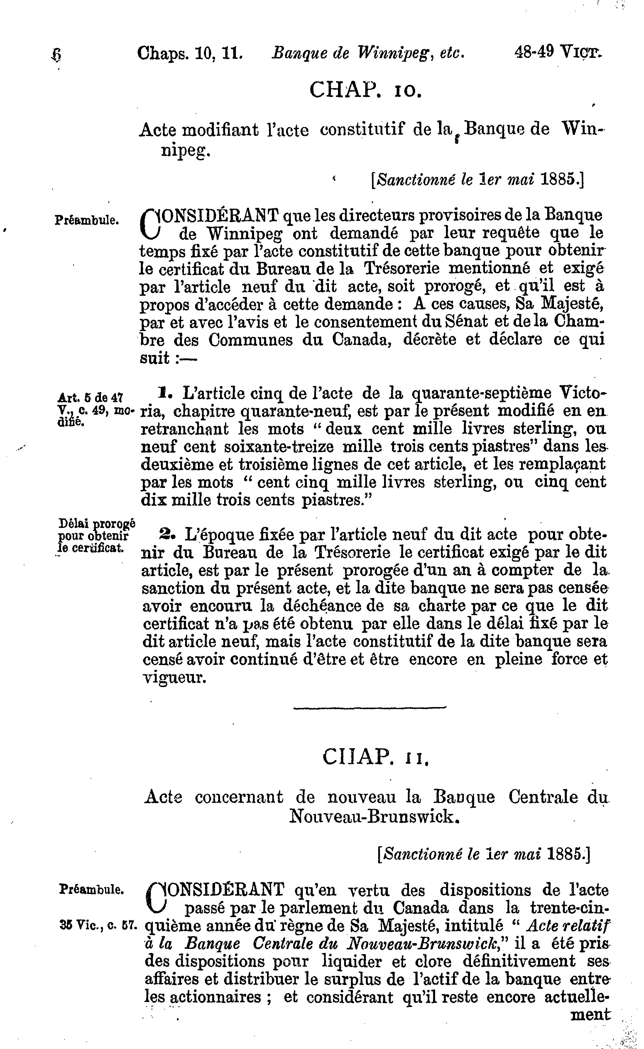 - Actes du parlement de la puissance du Canada passés durant la session tenue dans les quarante-huitième et quarante-neuvième années du règne de Sa Majesté la Reine Victoria : étant la troisième session du cinquième parlement commencée et tenue à Ottawa, le dix-neuvième jour de janvier, et fermée par prorogation le vingtième jour de juillet 1885 : actes locaux et privés : 1885 ptie 2 (Actes 8-39, 85-95)
