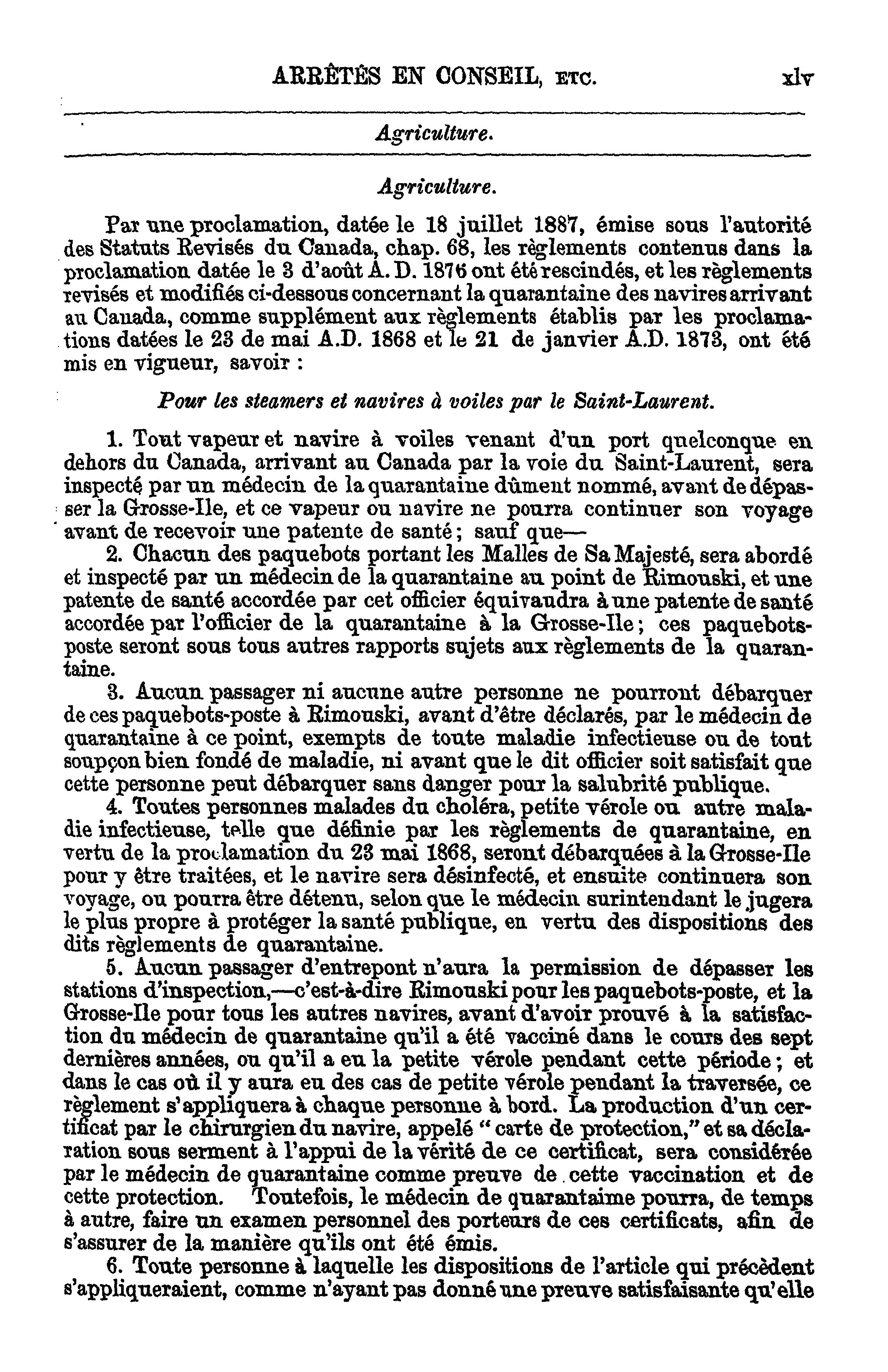Actes du parlement de la puissance du Canada passés durant la session tenue en la cinquante et unième année du règne de Sa Majesté la Reine Victoria : étant la deuxième session du sixième parlement, commencée et tenue à Ottawa, le vingt-troisième jour de février, et fermée par prorogation le vingt-deuxième jour de mai 1888 : actes publics généraux : 1888 (ptie 1) (Actes 1-47)