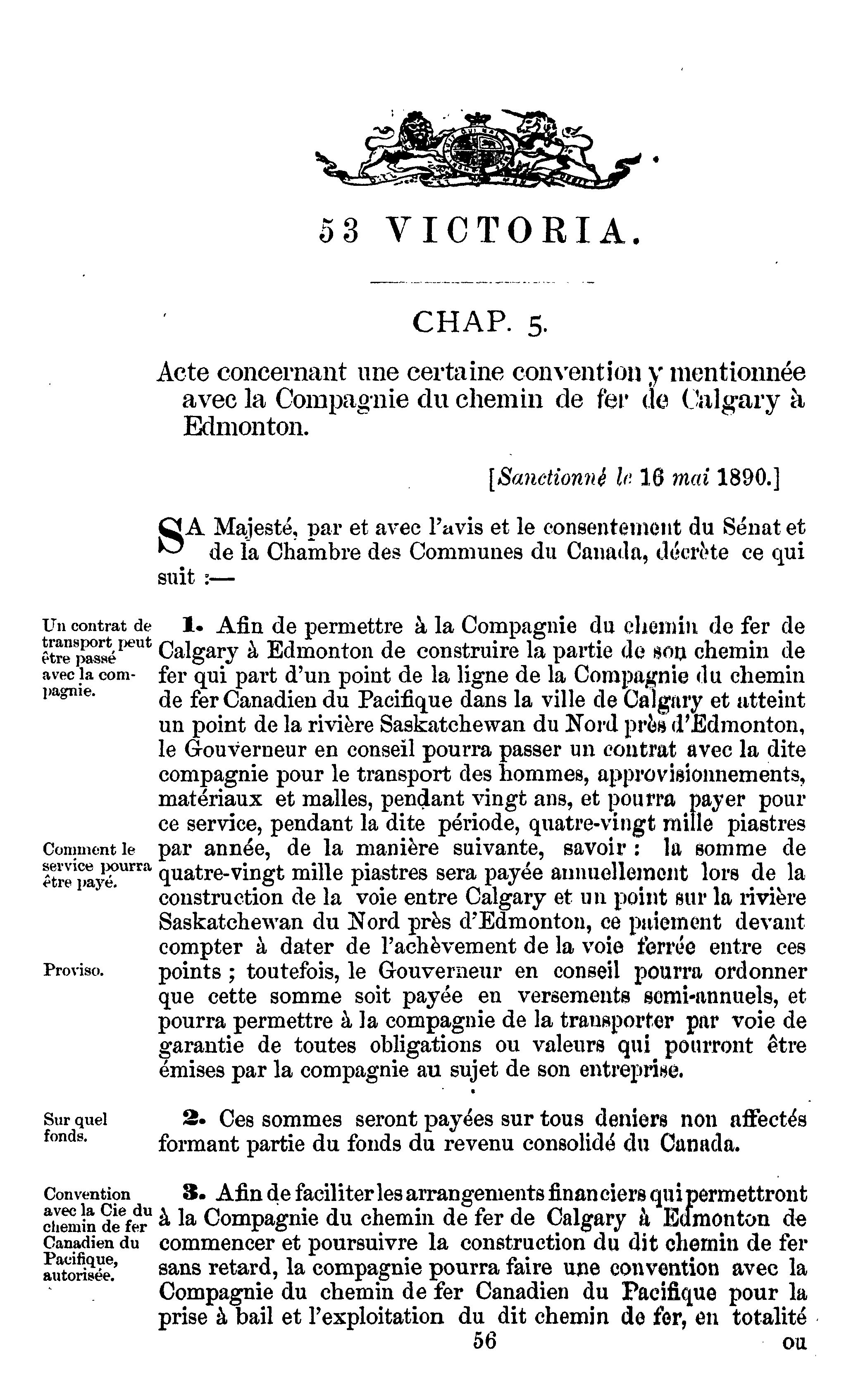 Actes du parlement de la puissance du Canada passés durant la session tenue en la cinquante-troisième année du règne de Sa Majesté la Reine Victoria : étant la quatrième session du sixième parlement, commencée et tenue à Ottawa le seizième jour de janvier, et fermée par prorogation le seizième jour de mai 1890 : actes publics généraux : 1890 (ptie 1) (Actes 1-38)