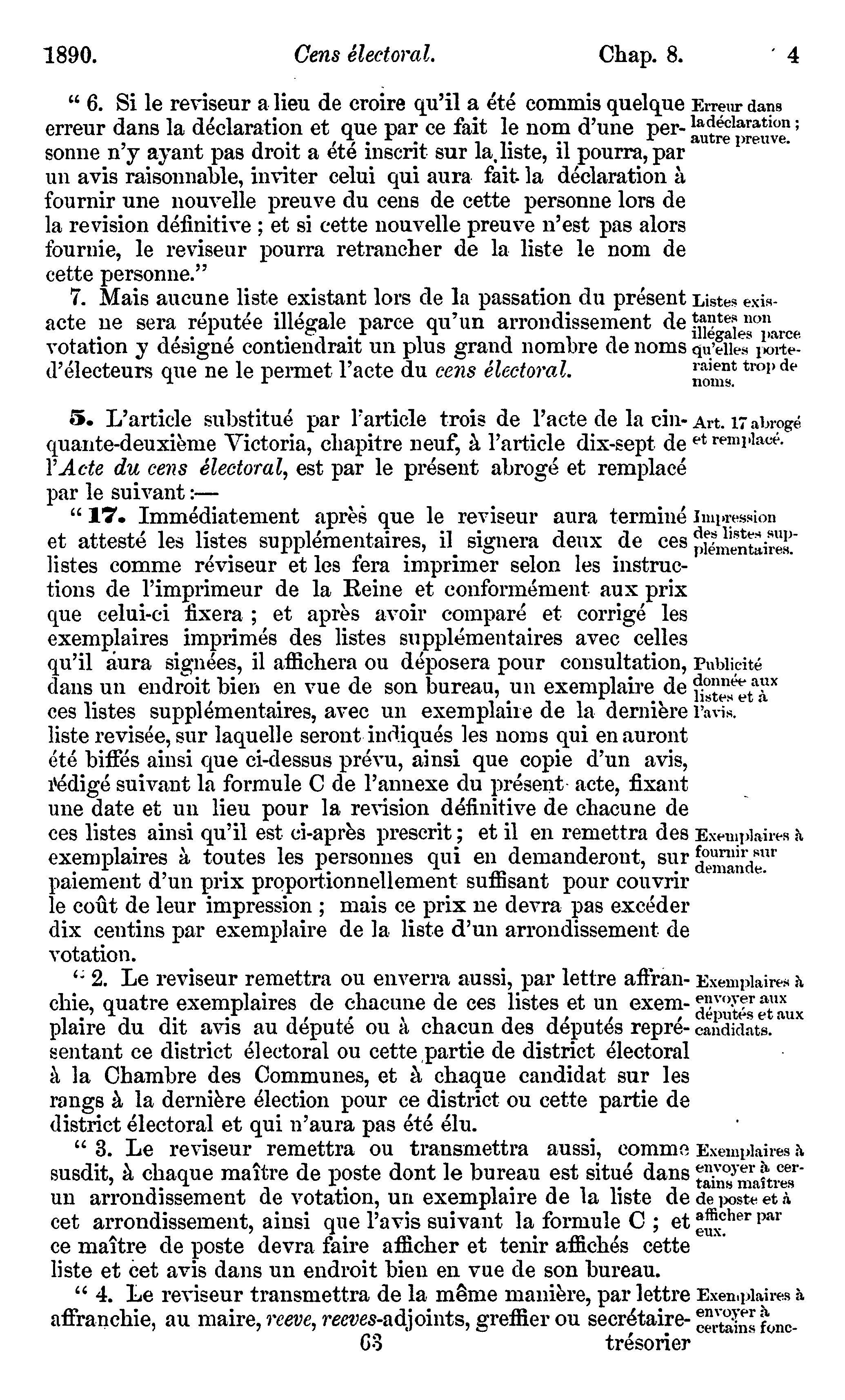 Actes du parlement de la puissance du Canada passés durant la session tenue en la cinquante-troisième année du règne de Sa Majesté la Reine Victoria : étant la quatrième session du sixième parlement, commencée et tenue à Ottawa le seizième jour de janvier, et fermée par prorogation le seizième jour de mai 1890 : actes publics généraux : 1890 (ptie 1) (Actes 1-38)