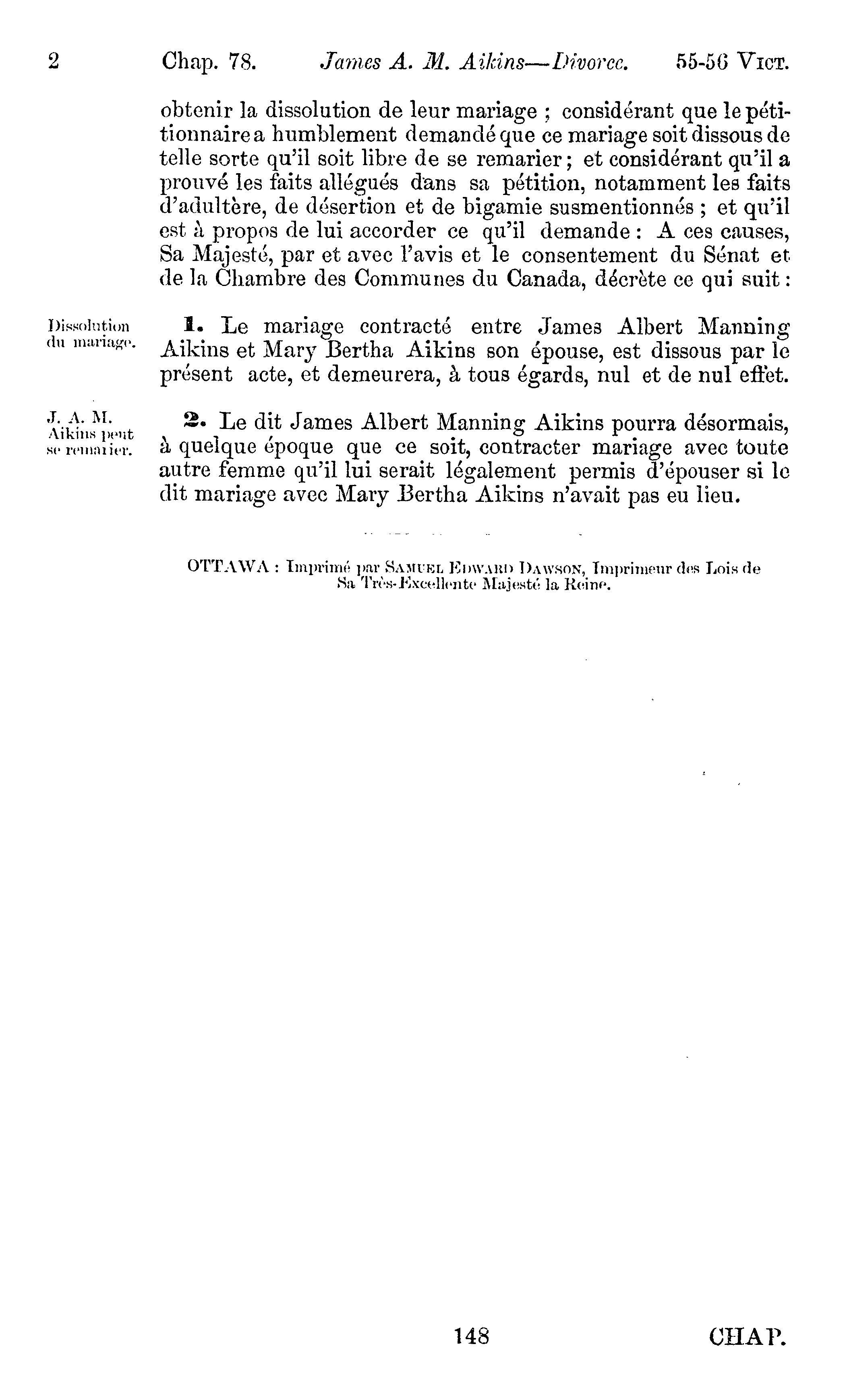 - Actes du parlement de la puissance du Canada passés durant la session tenue en les cinquante-cinquième et cinquante-sixième années du règne de Sa Majesté la Reine Victoria : étant la deuxième session du septième parlement commencée et tenue à Ottawa, le vingt-cinquième jour de février, et fermée par prorogation la neuvième jour de juillet 1892 : actes privés et locaux : 1892 (ptie 2) (Actes 30-82)