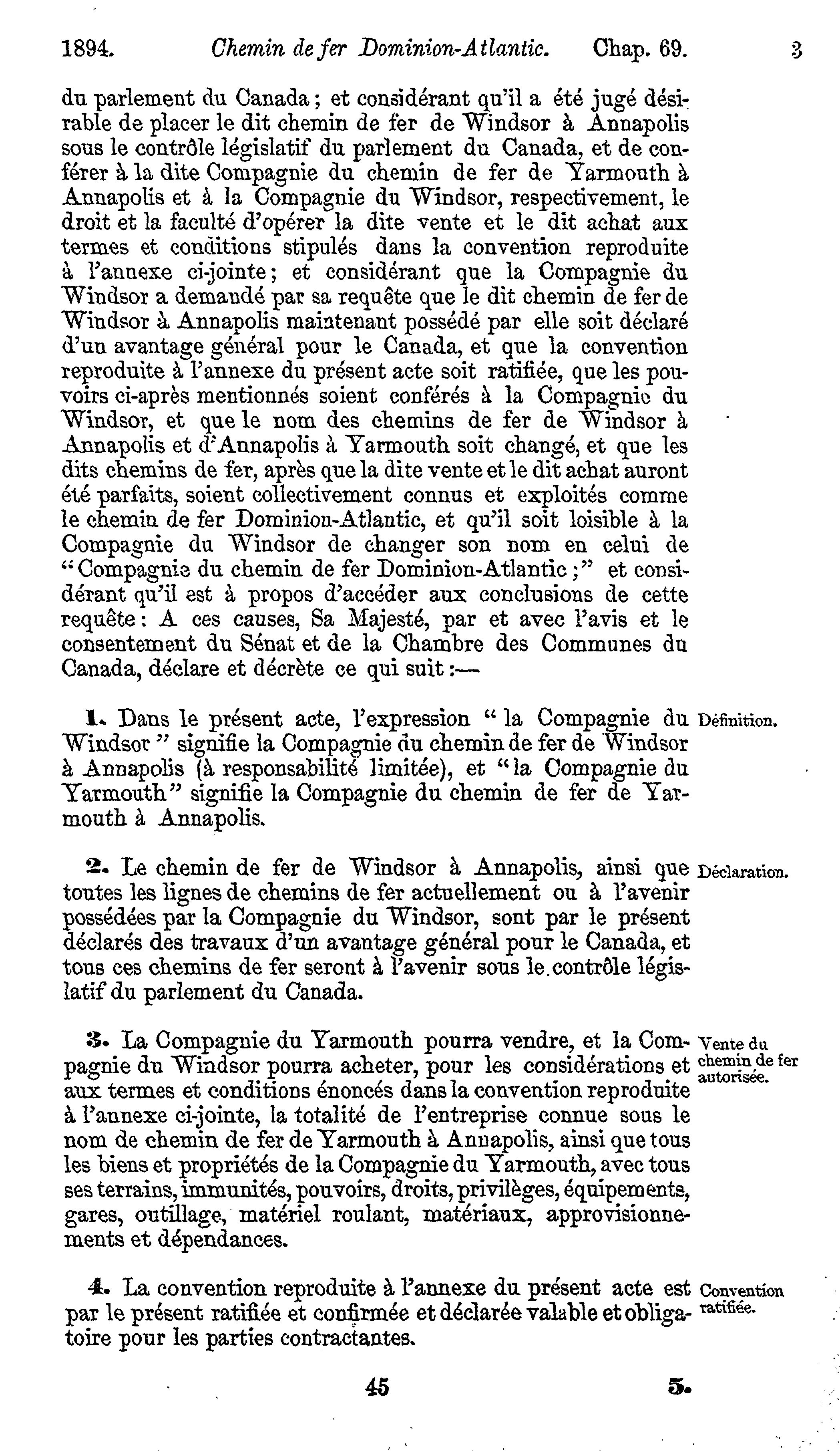 Actes du parlement de la puissance du Canada passés durant la session tenue en la cinquante-septième et cinquante-huitième années du règne de Sa Majesté la Reine Victoria : étant la quatrième session du septième parlement commencée et tenue à Ottawa, le quinzième jour de mars et fermée par prorogation le vingt-troisième jour de juillet 1894 : actes privés et locaux : 1894 (ptie 2) (Actes 61-134)