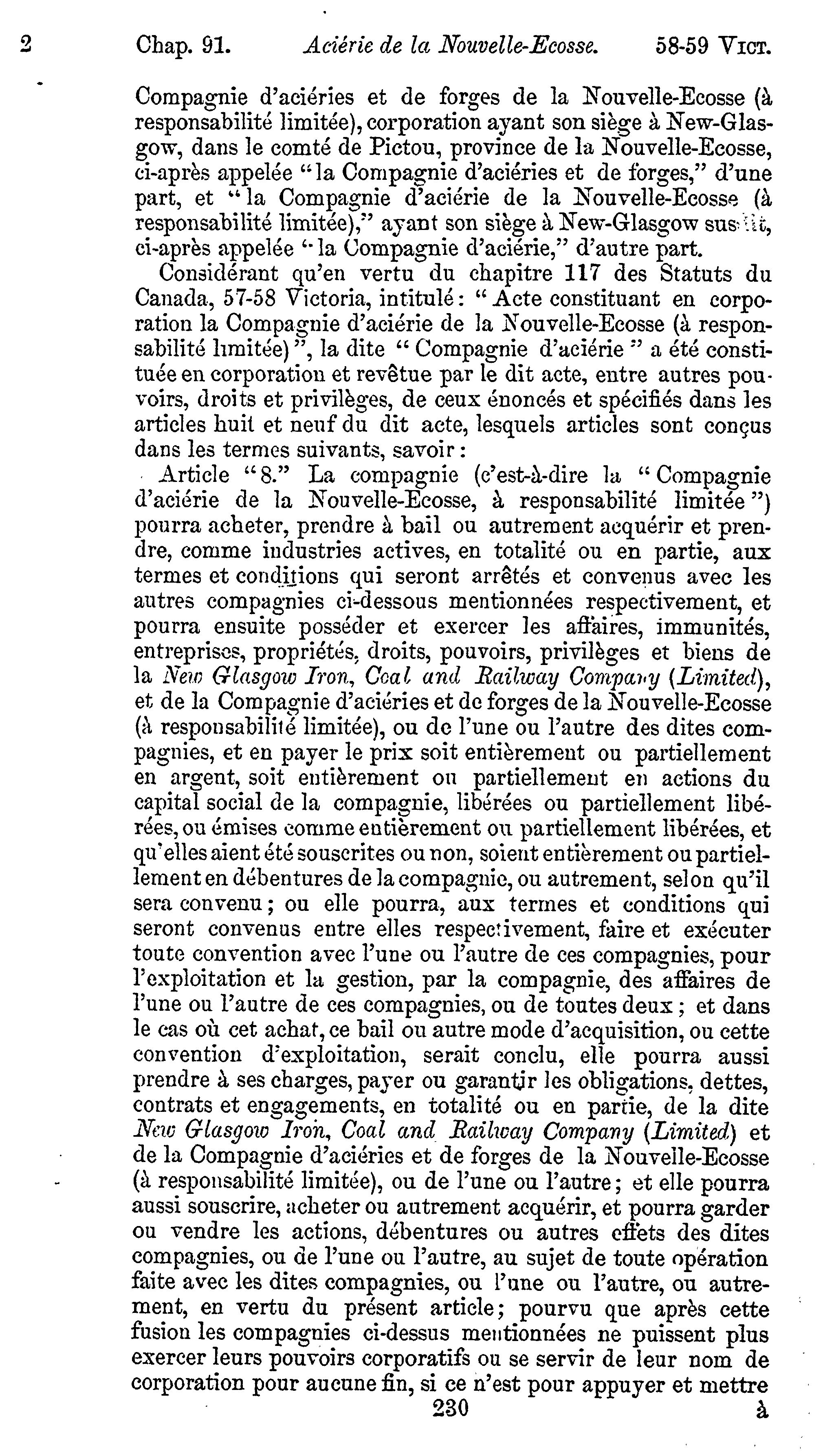 Actes du parlement de la puissance du Canada passés durant la session tenue en la cinquante-huitième et cinquante-neuvième années du règne de Sa Majesté la Reine Victoria : étant la cinquième session du septième parlement commencée et tenue à Ottawa, le dix-huitième jour d'avril et fermée par prorogation le vingt-deuxième jour de juillet 1895 : actes privés et locaux : 1895 (ptie 2) (Actes 45-97)