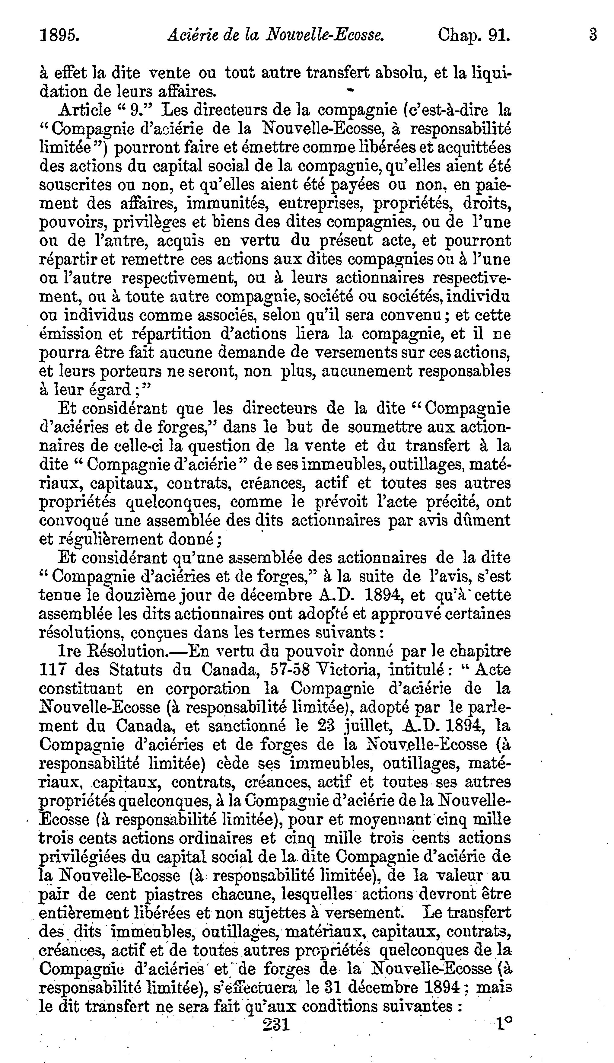 Actes du parlement de la puissance du Canada passés durant la session tenue en la cinquante-huitième et cinquante-neuvième années du règne de Sa Majesté la Reine Victoria : étant la cinquième session du septième parlement commencée et tenue à Ottawa, le dix-huitième jour d'avril et fermée par prorogation le vingt-deuxième jour de juillet 1895 : actes privés et locaux : 1895 (ptie 2) (Actes 45-97)