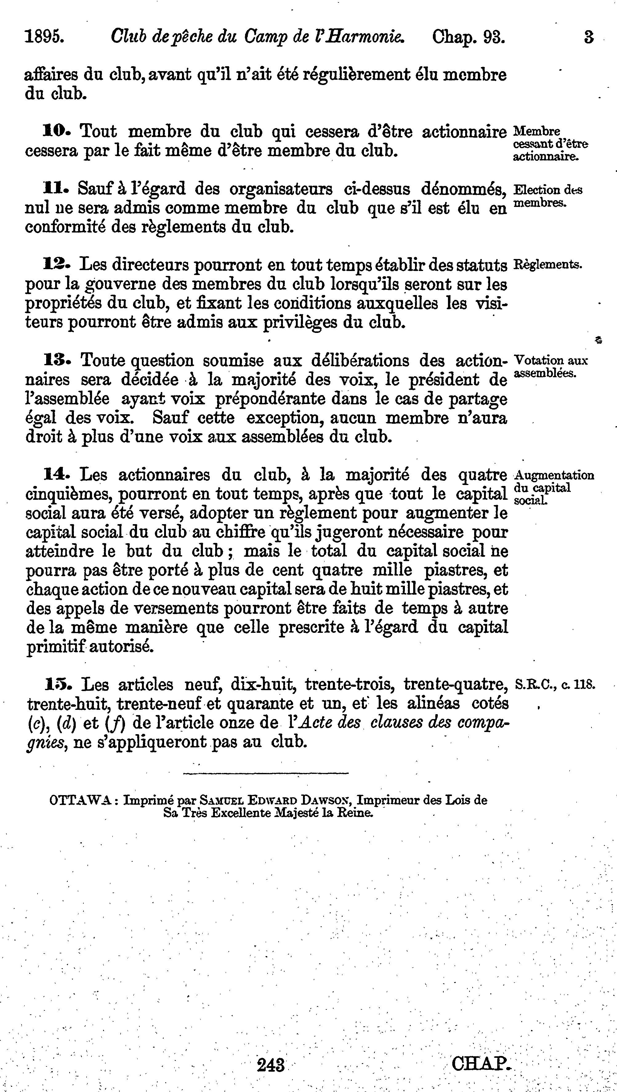 Actes du Parlement de la puissance du Canada : Actes du parlement de la puissance du Canada passés durant la session tenue en la cinquante-huitième et cinquante-neuvième années du règne de Sa Majesté la Reine Victoria : étant la cinquième session du septième parlement commencée et tenue à Ottawa, le dix-huitième jour d'avril et fermée par prorogation le vingt-deuxième jour de juillet 1895 : actes privés et locaux : 1895 (ptie 2) (Actes 45-97)