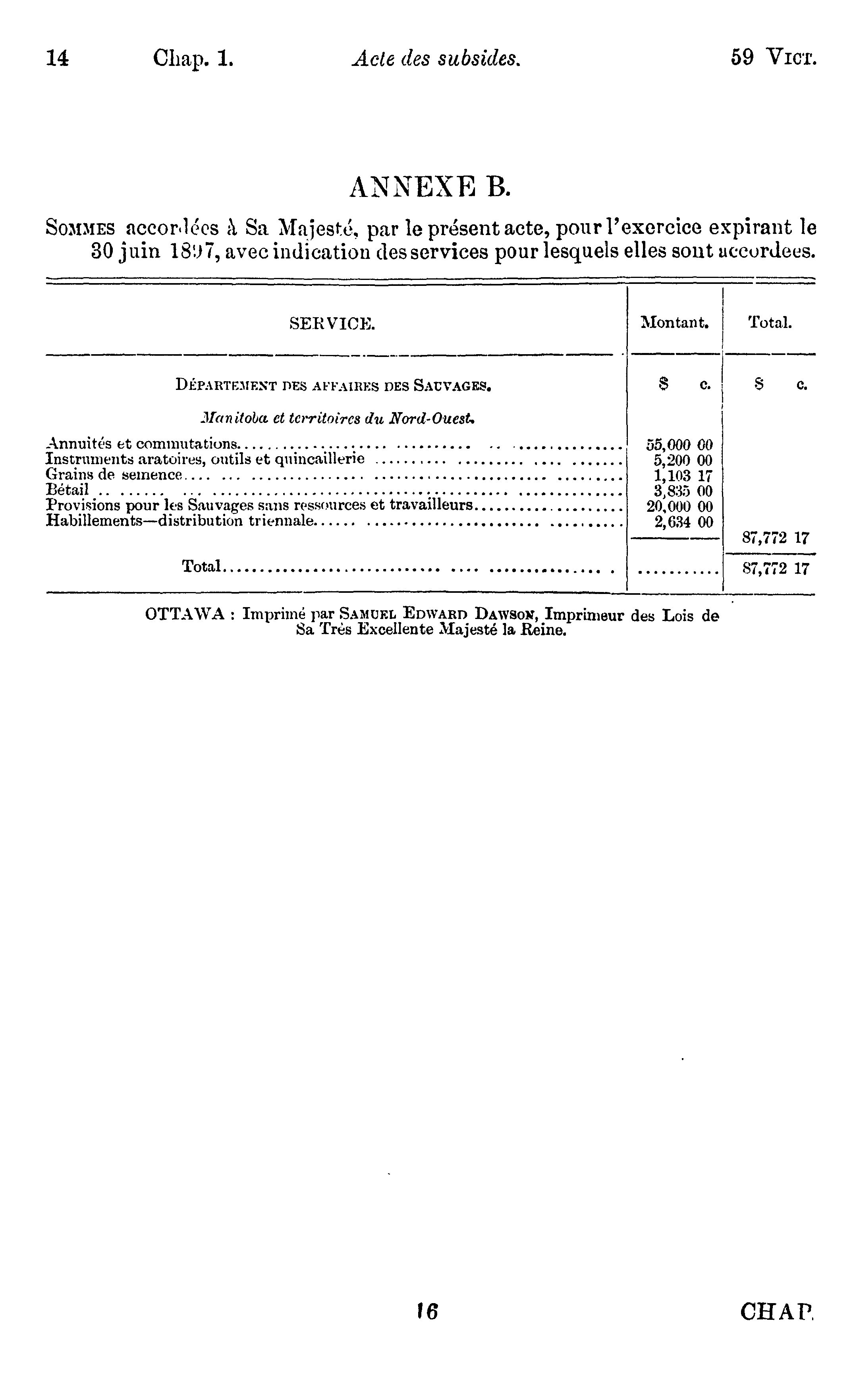 Actes du Parlement de la puissance du Canada : Actes du parlement de la puissance du Canada passés durant la session tenue en la cinquante-neuvième année du règne de Sa Majesté la Reine Victoria : étant la sixième session du septième parlement commencée et tenue à Ottawa, le deuxième jour de janvier et fermée par prorogation le vingt-troisième jour d'avril 1896 : actes publics généraux : 1896 (ptie 1) (Actes 1-14)