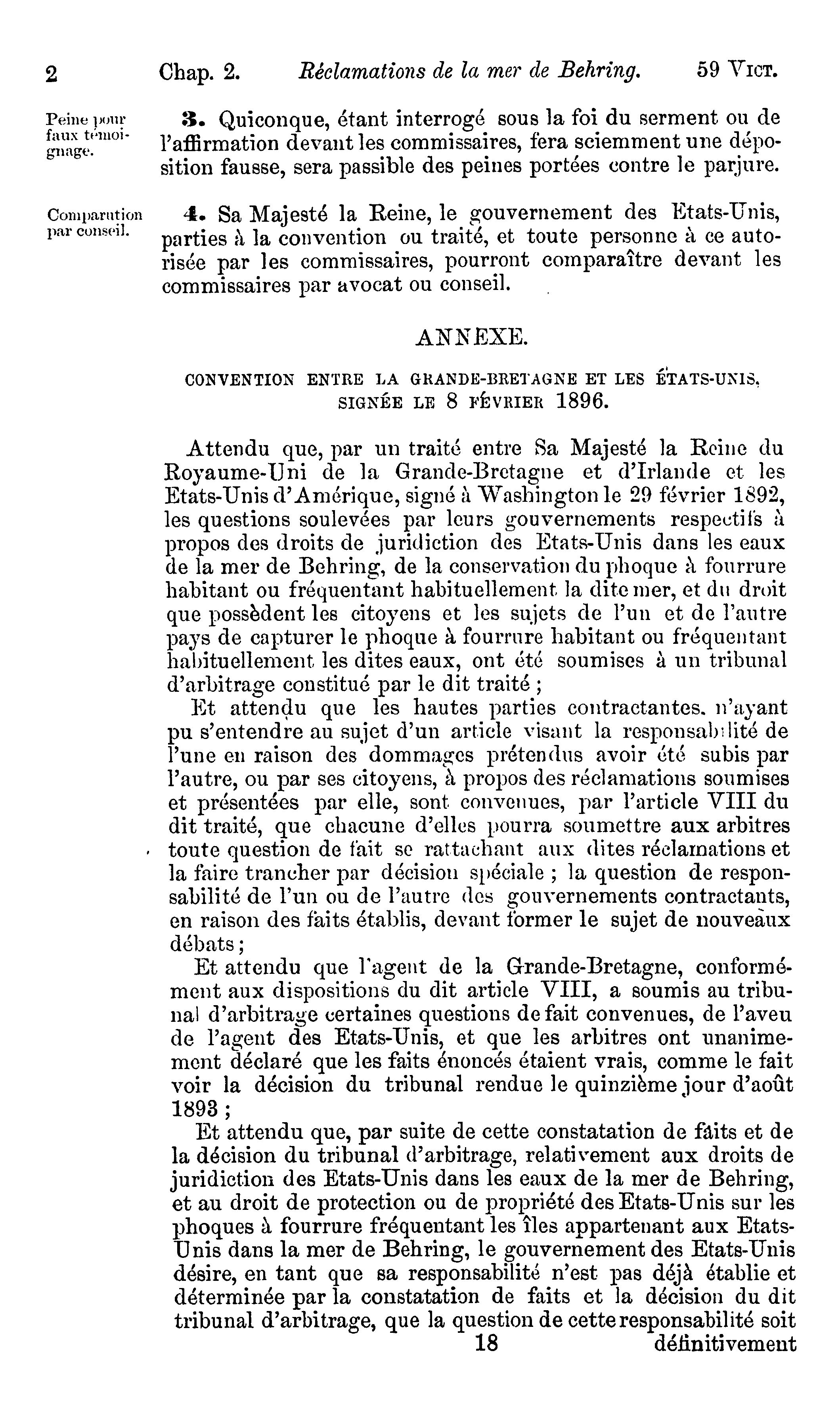 Actes du parlement de la puissance du Canada passés durant la session tenue en la cinquante-neuvième année du règne de Sa Majesté la Reine Victoria : étant la sixième session du septième parlement commencée et tenue à Ottawa, le deuxième jour de janvier et fermée par prorogation le vingt-troisième jour d'avril 1896 : actes publics généraux : 1896 (ptie 1) (Actes 1-14)