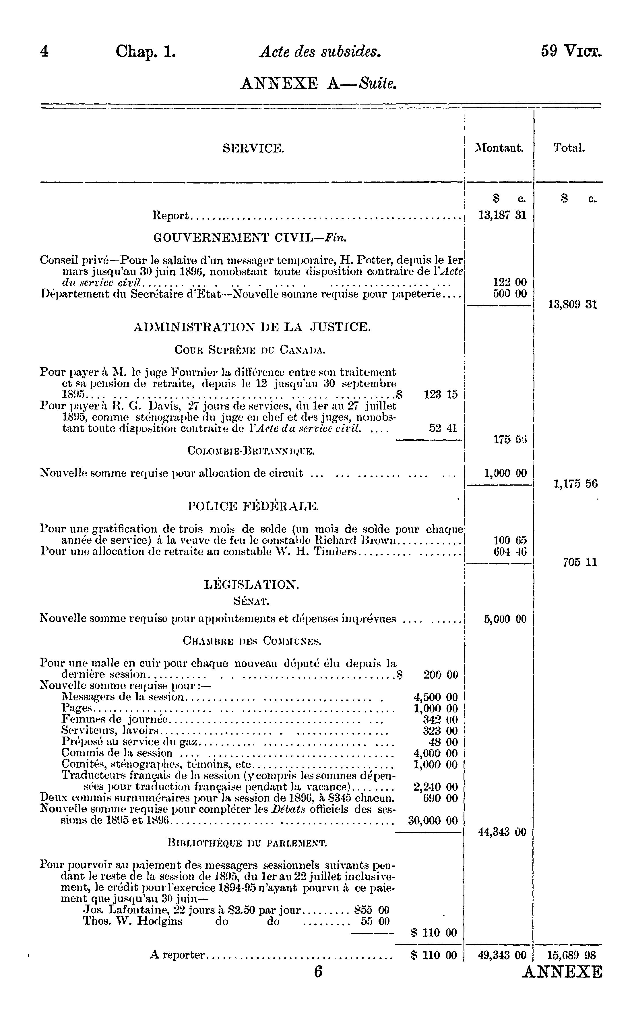 Actes du parlement de la puissance du Canada passés durant la session tenue en la cinquante-neuvième année du règne de Sa Majesté la Reine Victoria : étant la sixième session du septième parlement commencée et tenue à Ottawa, le deuxième jour de janvier et fermée par prorogation le vingt-troisième jour d'avril 1896 : actes publics généraux : 1896 (ptie 1) (Actes 1-14)