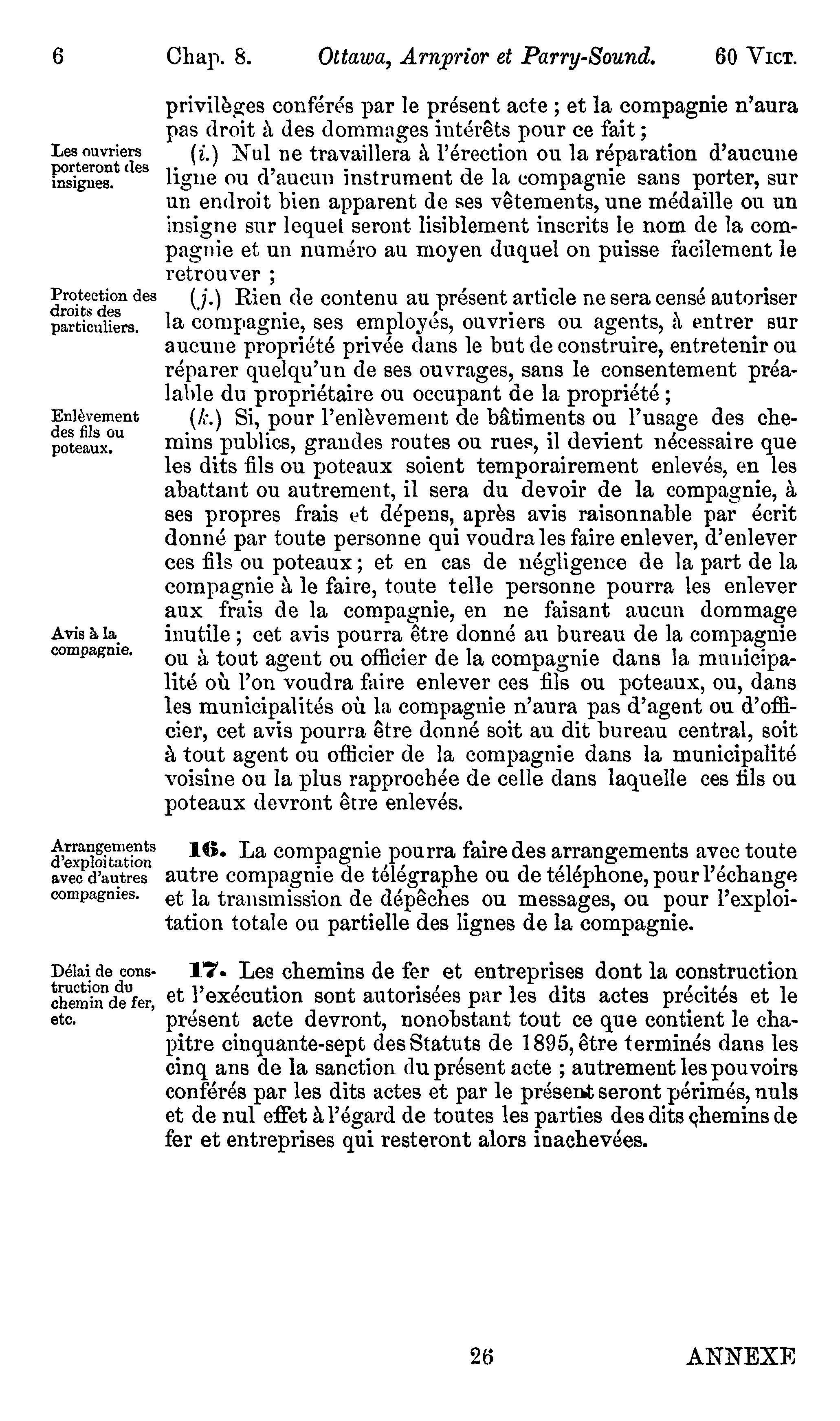 Actes du Parlement de la puissance du Canada : Actes du parlement de la puissance du Canada passés durant la session tenue en la soixantième année du règne de Sa Majesté la Reine Victoria : étant la première session du huitième parlement, commencée et tenue à Ottawa, le dix-neuvième jour d'août et fermée par prorogation le cinquième jour d'octobre 1896 : actes privés et locaux : 1896 (ptie 2) (Actes 6-16)