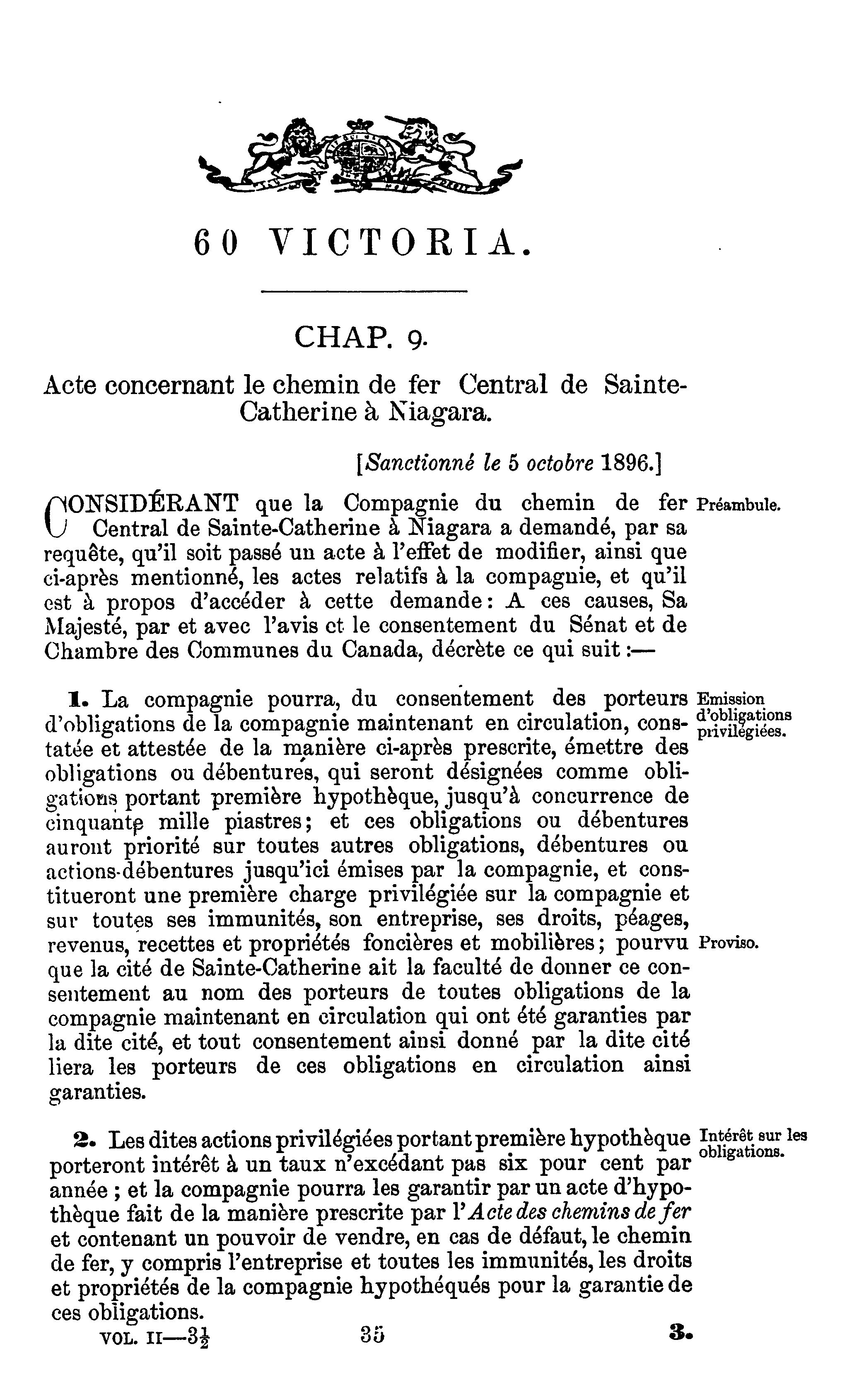 Actes du Parlement de la puissance du Canada : Actes du parlement de la puissance du Canada passés durant la session tenue en la soixantième année du règne de Sa Majesté la Reine Victoria : étant la première session du huitième parlement, commencée et tenue à Ottawa, le dix-neuvième jour d'août et fermée par prorogation le cinquième jour d'octobre 1896 : actes privés et locaux : 1896 (ptie 2) (Actes 6-16)