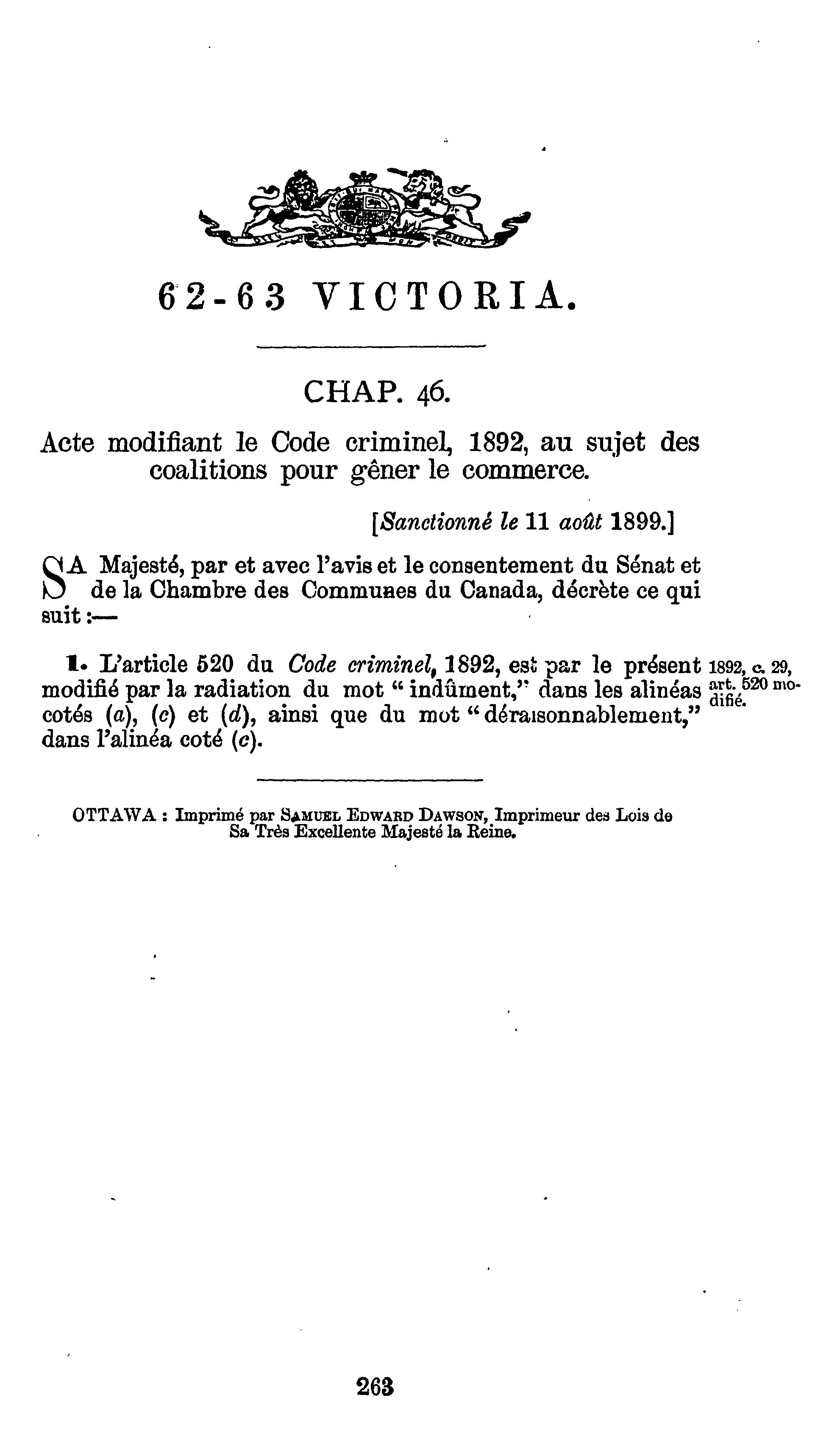 Actes du Parlement de la puissance du Canada : Actes du parlement de la puissance du Canada passés durant la session tenue en les soixante-deuxième et soixante-troisième années du règne de Sa Majesté la Reine Victoria : étant la quatrième session du huitième parlement, commencée et tenue à Ottawa, le seizième jour de mars, et fermée par prorogation le onzième jour d'août 1899 : actes publics généraux : 1899 (ptie 1) (Actes 1-49)