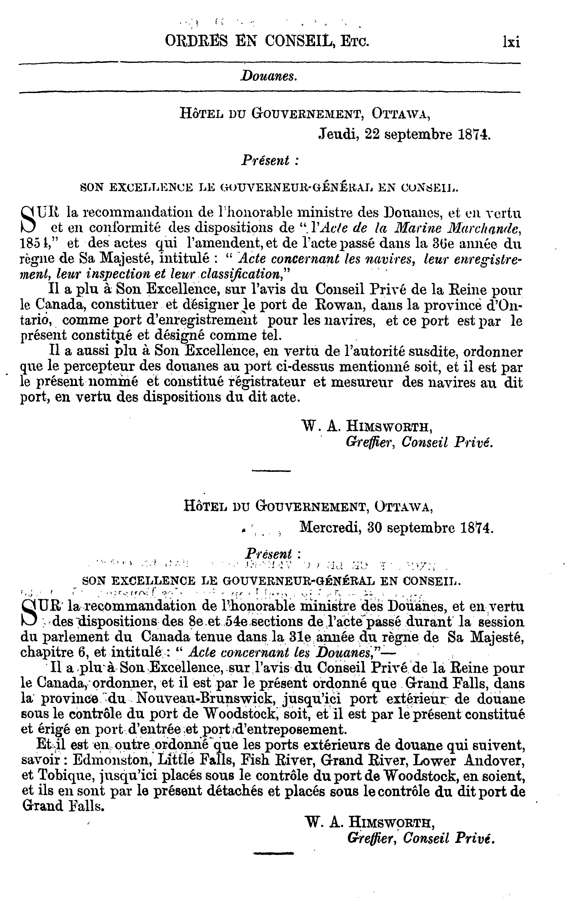 Actes du Parlement de la puissance du Canada : Actes du parlement de la puissance du Canada passés dans la trente-huitième année du règne de Sa Majesté, la Reine Victoria, et dans la seconde session du troisième parlement : commencée et tenue à Ottawa, le quatrième jour de février, et fermée par prorogation le huitième jour d'avril 1875 : actes publics généraux : 1875 (ptie 1) (Actes 1-56)