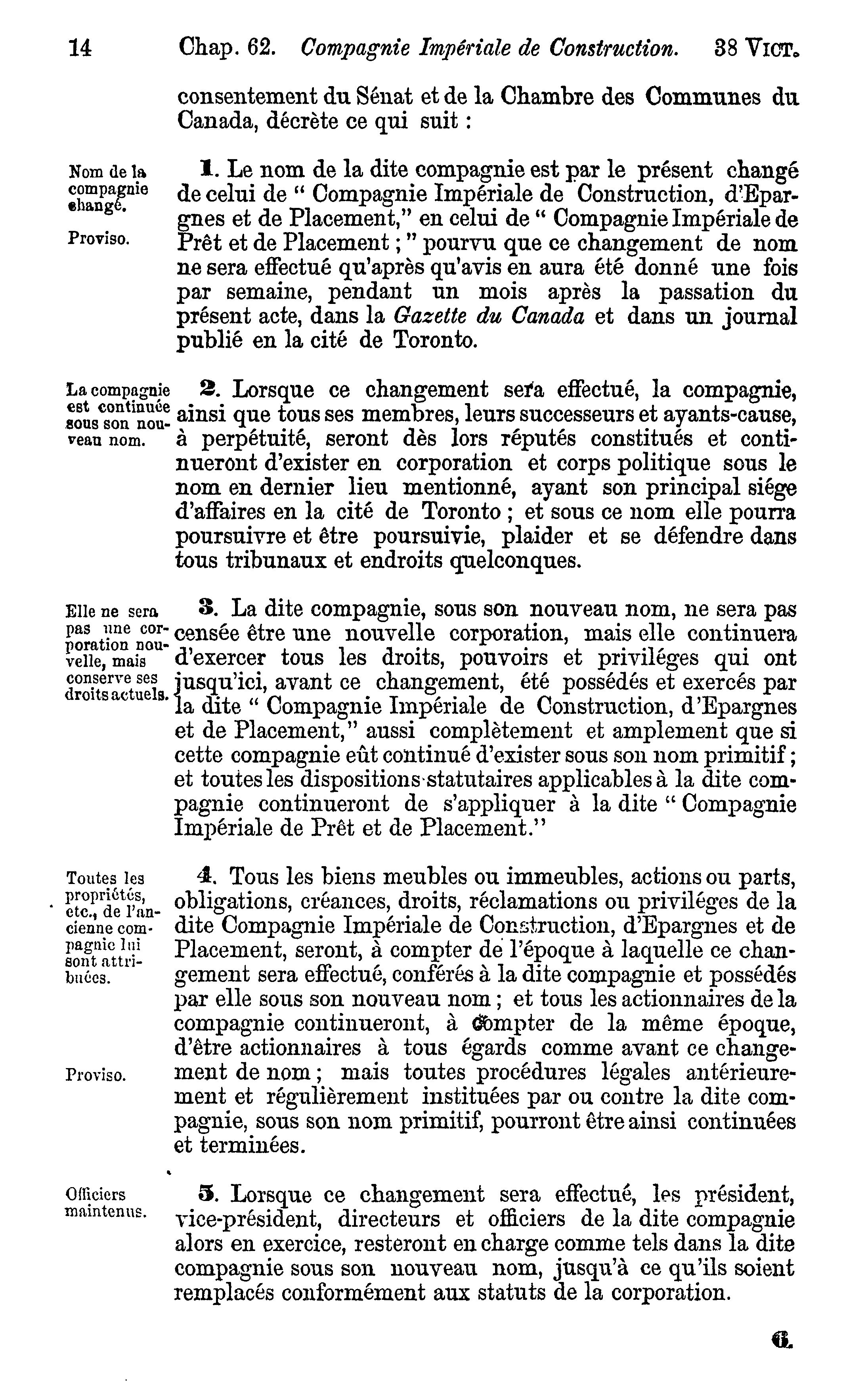 - Actes du parlement de la puissance du Canada passés dans la trente-huitième année du règne de Sa Majesté, la Reine Victoria, et dans la seconde session du troisième parlement : commencée et tenue à Ottawa, le quatrième jour de février, et fermée par prorogation le huitième jour d'avril 1875 : actes privés et locaux : 1875 (ptie 2) (Actes 57-98)