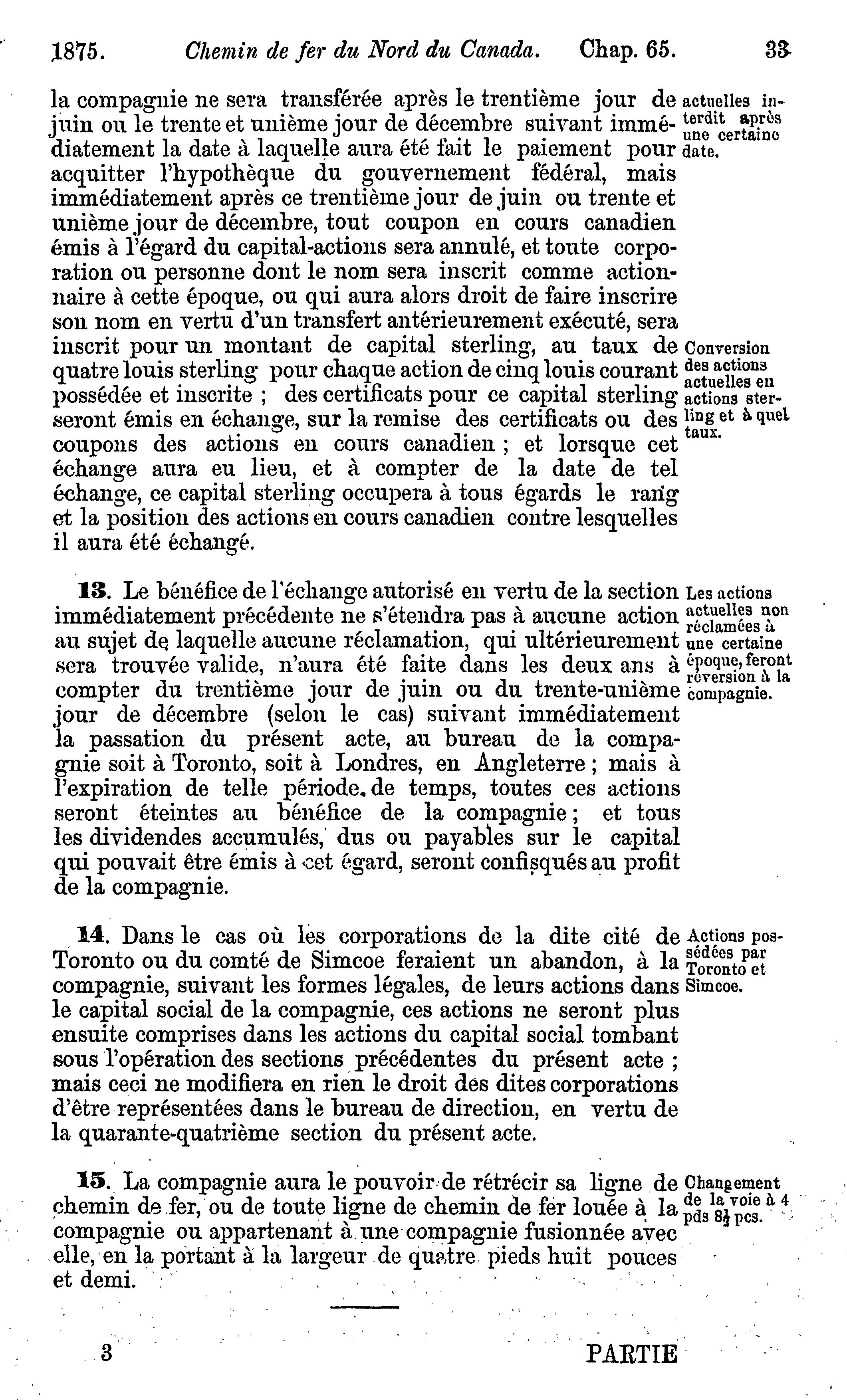 - Actes du parlement de la puissance du Canada passés dans la trente-huitième année du règne de Sa Majesté, la Reine Victoria, et dans la seconde session du troisième parlement : commencée et tenue à Ottawa, le quatrième jour de février, et fermée par prorogation le huitième jour d'avril 1875 : actes privés et locaux : 1875 (ptie 2) (Actes 57-98)