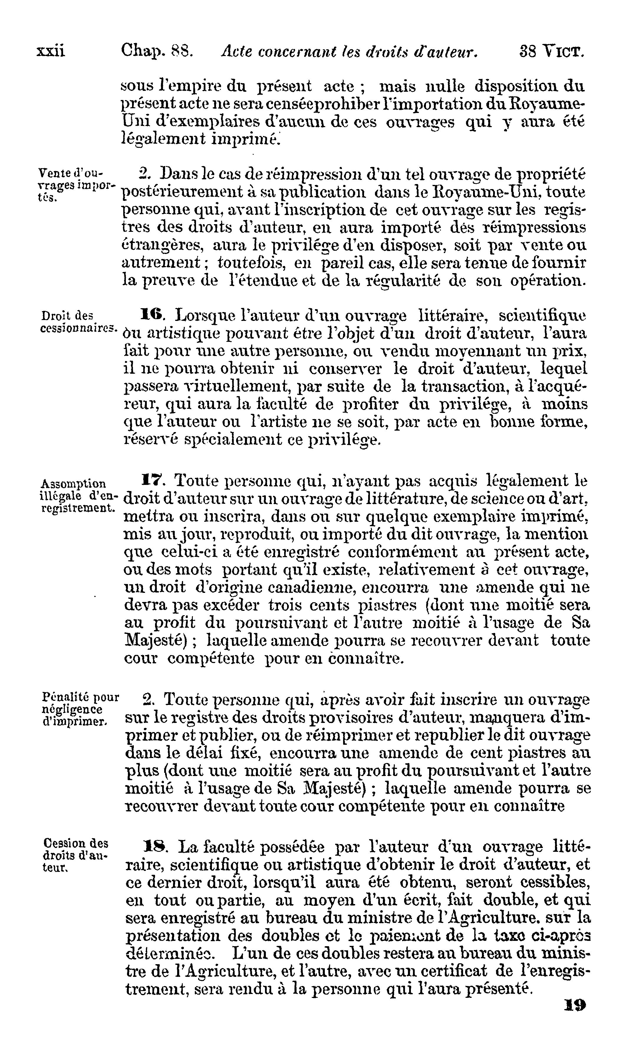 Actes du parlement de la puissance du Canada passés dans la trente-neuvième année du règne de Sa Majesté, la Reine Victoria, et dans la troisième session du troisième parlement : commencée et tenue à Ottawa, le dixième jour de février, et fermée par proclamation le douzième jour d'avril 1876 : actes publics généraux : 1876 (ptie 1) (Actes 1-39)