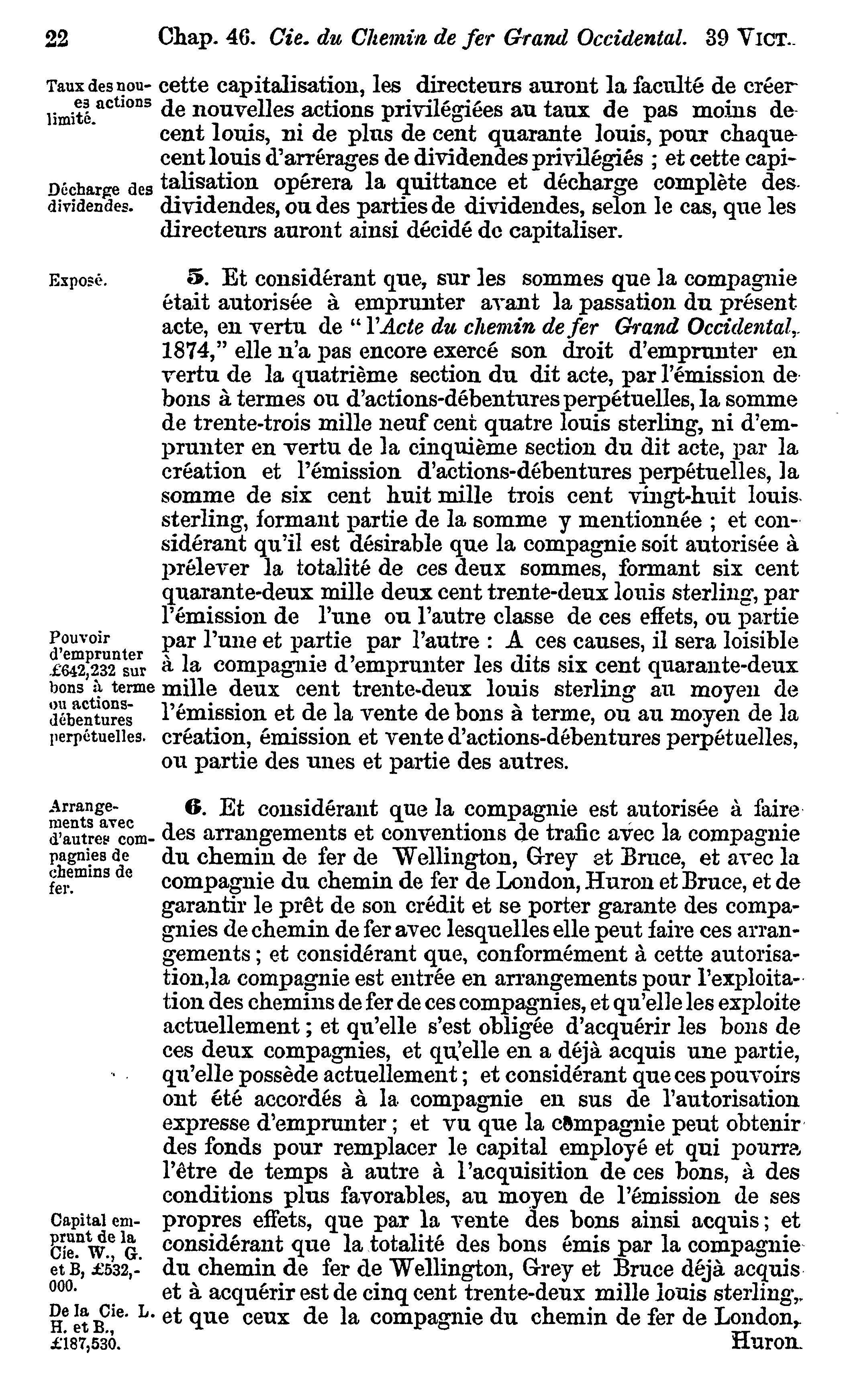 Actes du parlement de la puissance du Canada passés dans la trente-neuvième année du règne de Sa Majesté, la Reine Victoria, et dans la troisième session du troisième parlement : commencée et tenue à Ottawa, le dixième jour de février, et fermée par proclamation le douzième jour d'avril 1876 : actes privés et locaux : 1876 (ptie 2) (Actes 40-75)