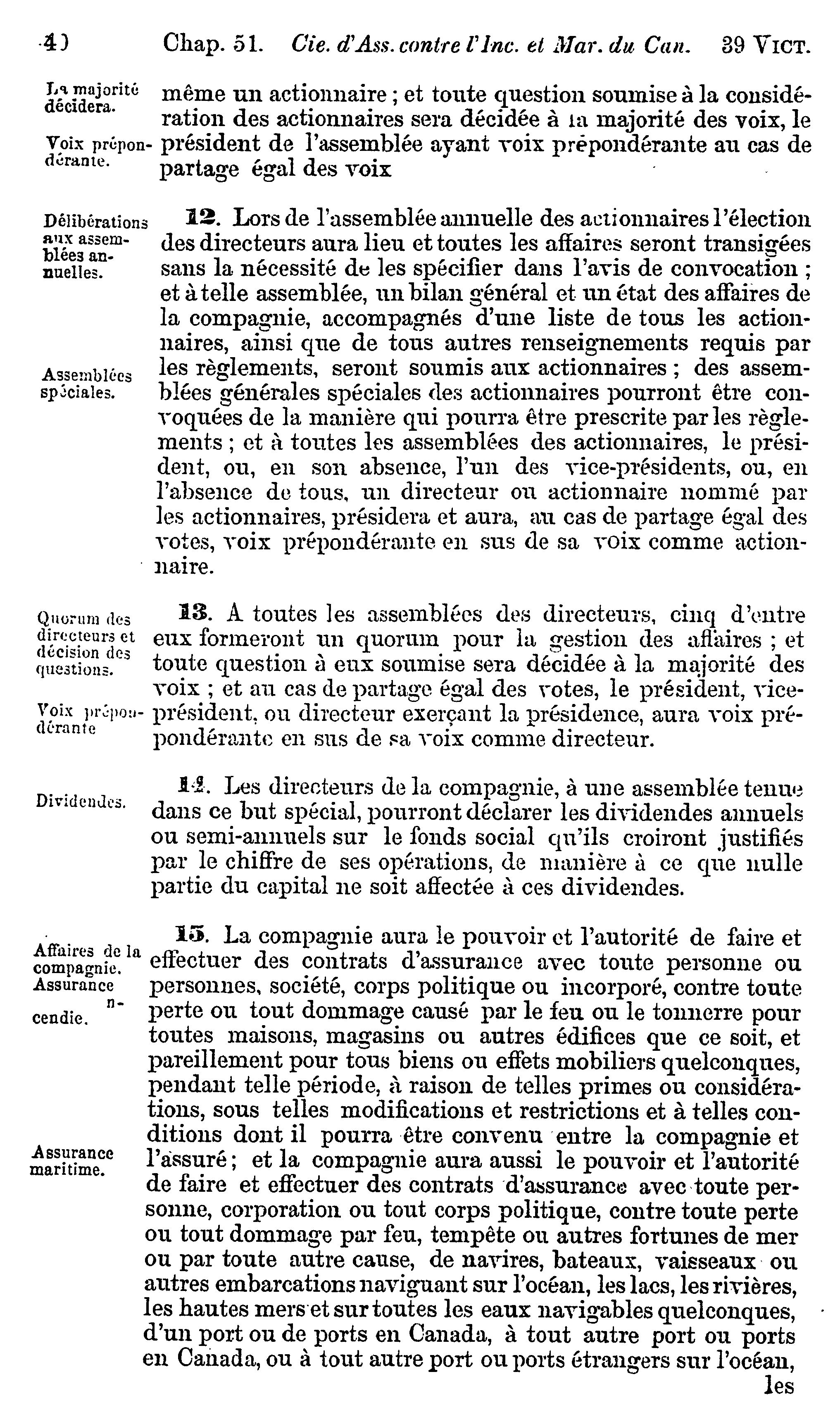 - Actes du parlement de la puissance du Canada passés dans la trente-neuvième année du règne de Sa Majesté, la Reine Victoria, et dans la troisième session du troisième parlement : commencée et tenue à Ottawa, le dixième jour de février, et fermée par proclamation le douzième jour d'avril 1876 : actes privés et locaux : 1876 (ptie 2) (Actes 40-75)