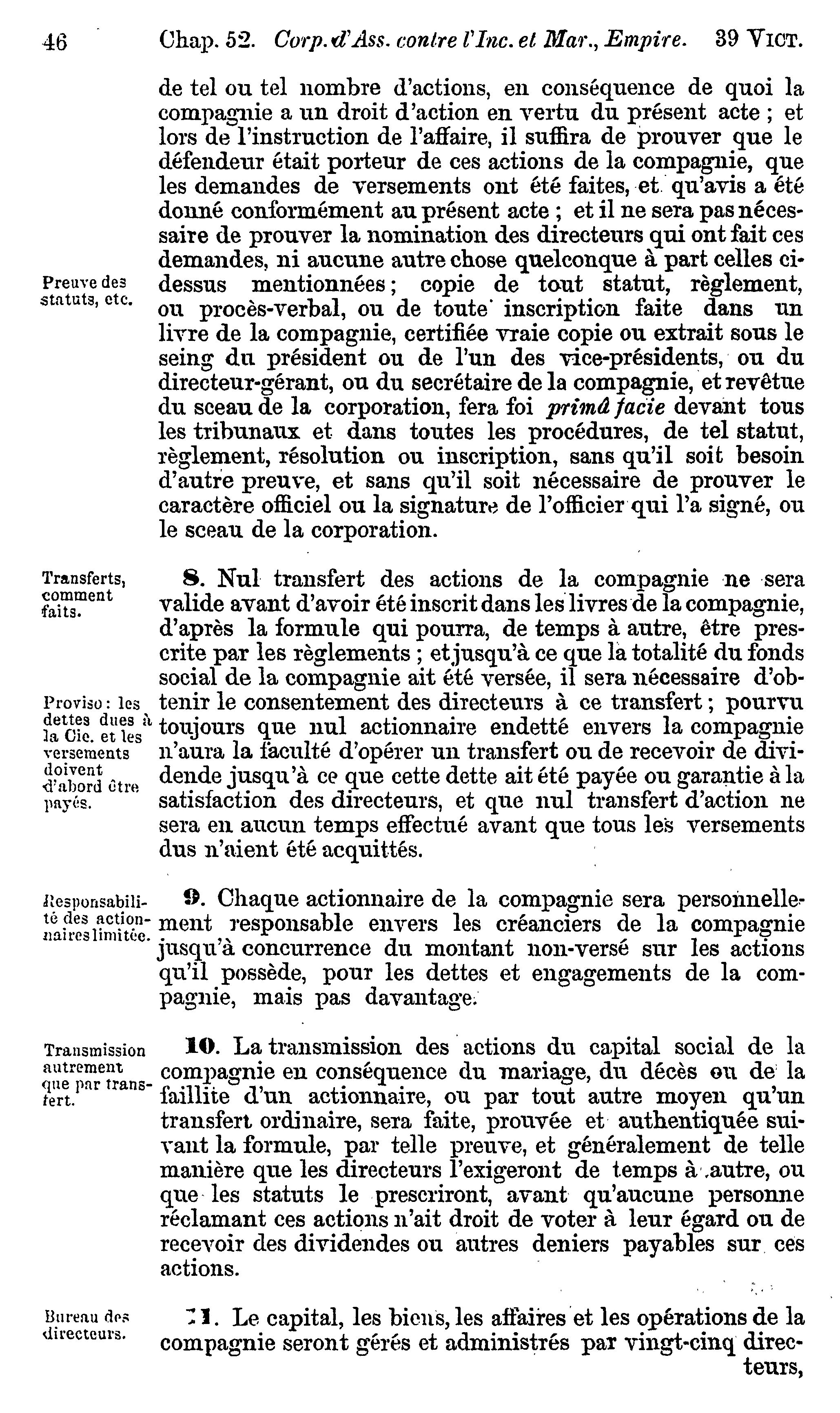 - Actes du parlement de la puissance du Canada passés dans la trente-neuvième année du règne de Sa Majesté, la Reine Victoria, et dans la troisième session du troisième parlement : commencée et tenue à Ottawa, le dixième jour de février, et fermée par proclamation le douzième jour d'avril 1876 : actes privés et locaux : 1876 (ptie 2) (Actes 40-75)