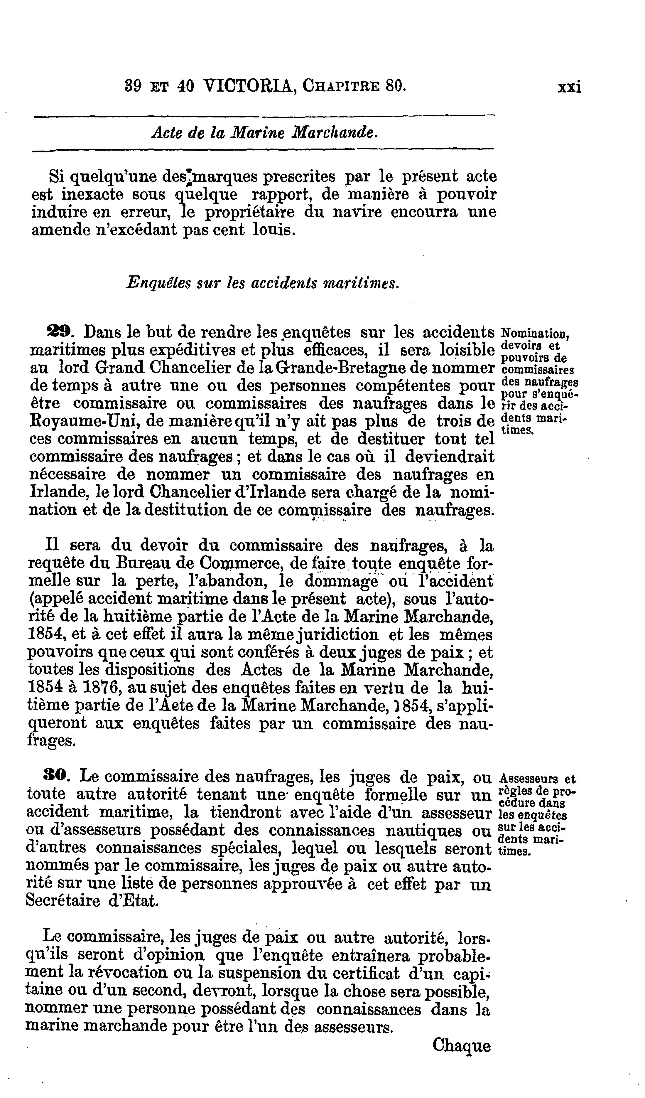 Actes du parlement de la puissance du Canada passés dans la quarantième année du règne de Sa Majesté, la Reine Victoria, et dans la quatrième session du troisième parlement : commencée et tenue à Ottawa, le huitième jour de février, et fermée par prorogation le vingt-huitième jour d'avril 1877 : actes publics généraux : 1877 (ptie 1) (Actes 1-53)