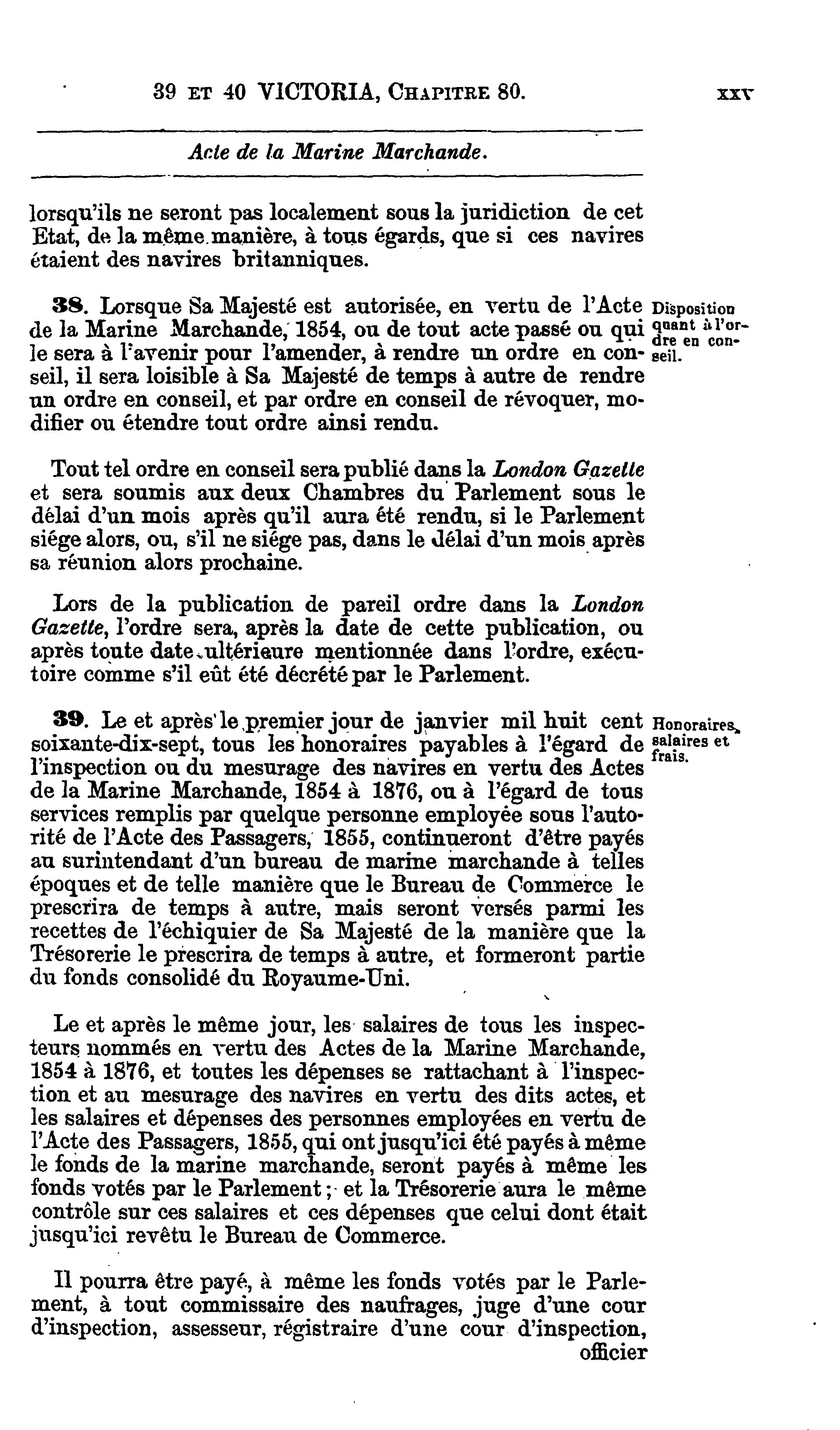 Actes du parlement de la puissance du Canada passés dans la quarantième année du règne de Sa Majesté, la Reine Victoria, et dans la quatrième session du troisième parlement : commencée et tenue à Ottawa, le huitième jour de février, et fermée par prorogation le vingt-huitième jour d'avril 1877 : actes publics généraux : 1877 (ptie 1) (Actes 1-53)