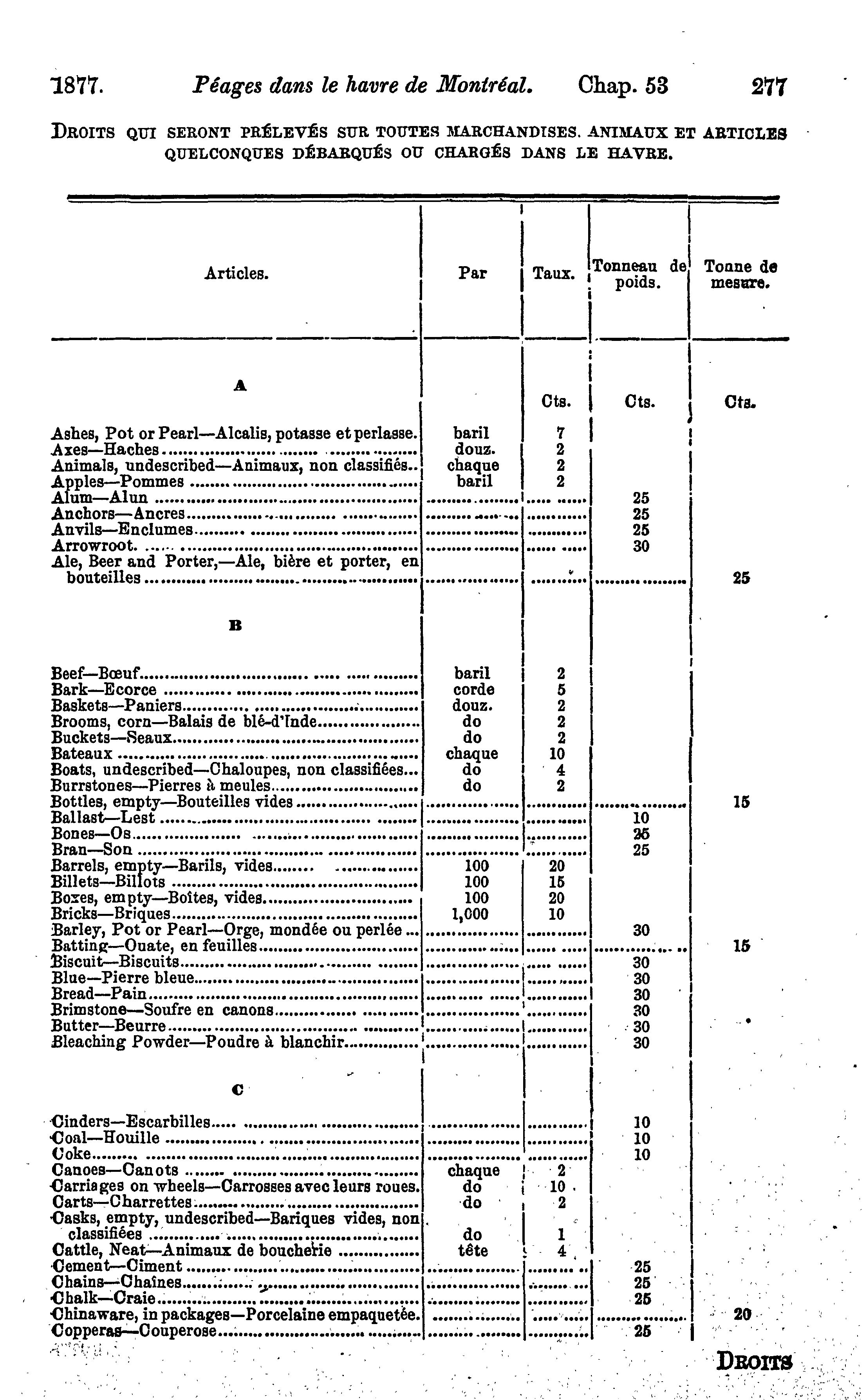 Actes du parlement de la puissance du Canada passés dans la quarantième année du règne de Sa Majesté, la Reine Victoria, et dans la quatrième session du troisième parlement : commencée et tenue à Ottawa, le huitième jour de février, et fermée par prorogation le vingt-huitième jour d'avril 1877 : actes publics généraux : 1877 (ptie 1) (Actes 1-53)