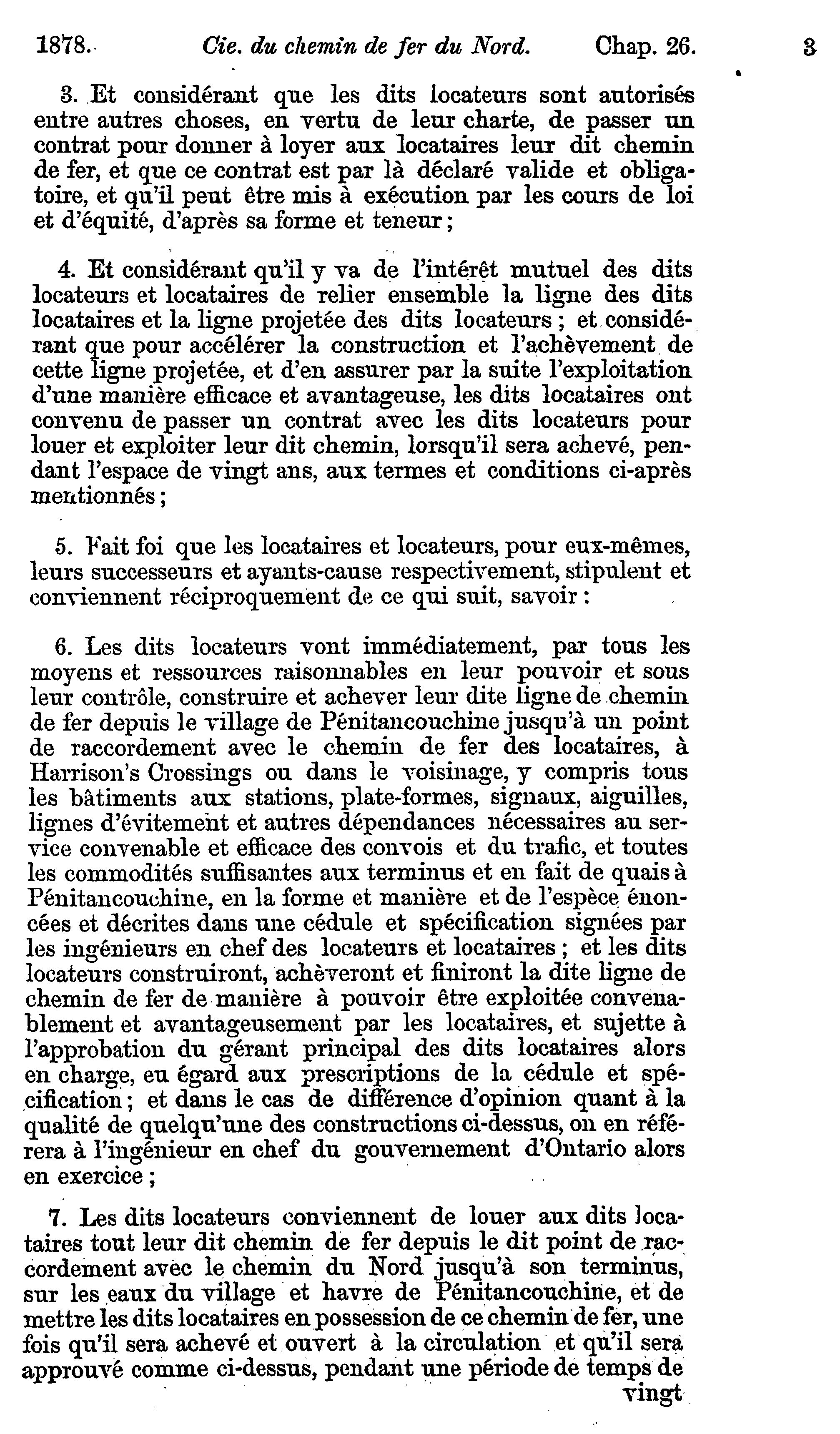 Actes du parlement de la puissance du Canada passés dans la quarante-et-unième année du règne de Sa Majesté, la Reine Victoria, et dans la cinquième session du troisième parlement : commencée et tenue à Ottawa, le septième jour de février, et fermée par prorogation le dixième jour de mai 1878 : actes privés et locaux : 1878 (ptie 2) (Actes 23-45)