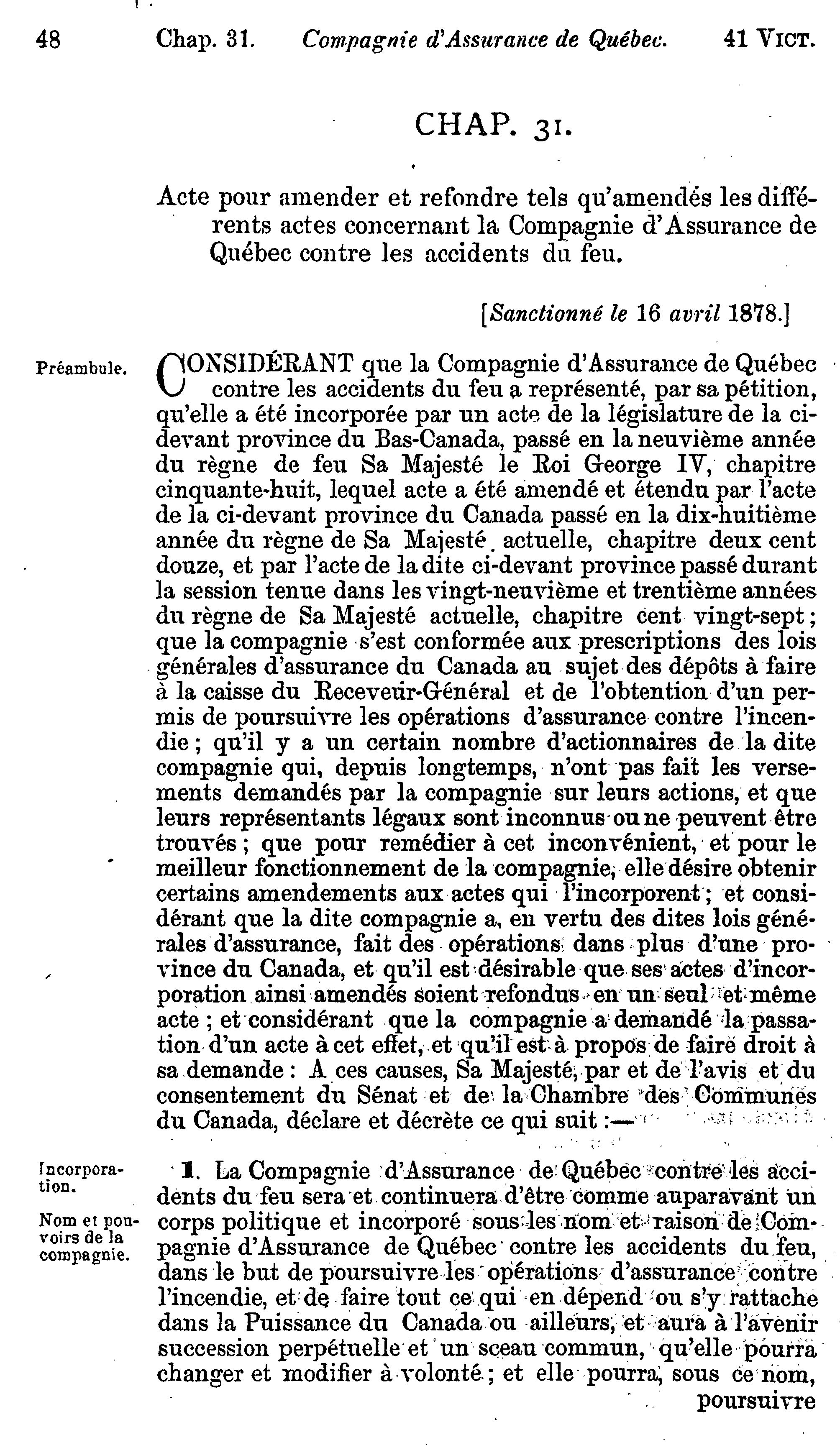 Actes du parlement de la puissance du Canada passés dans la quarante-et-unième année du règne de Sa Majesté, la Reine Victoria, et dans la cinquième session du troisième parlement : commencée et tenue à Ottawa, le septième jour de février, et fermée par prorogation le dixième jour de mai 1878 : actes privés et locaux : 1878 (ptie 2) (Actes 23-45)