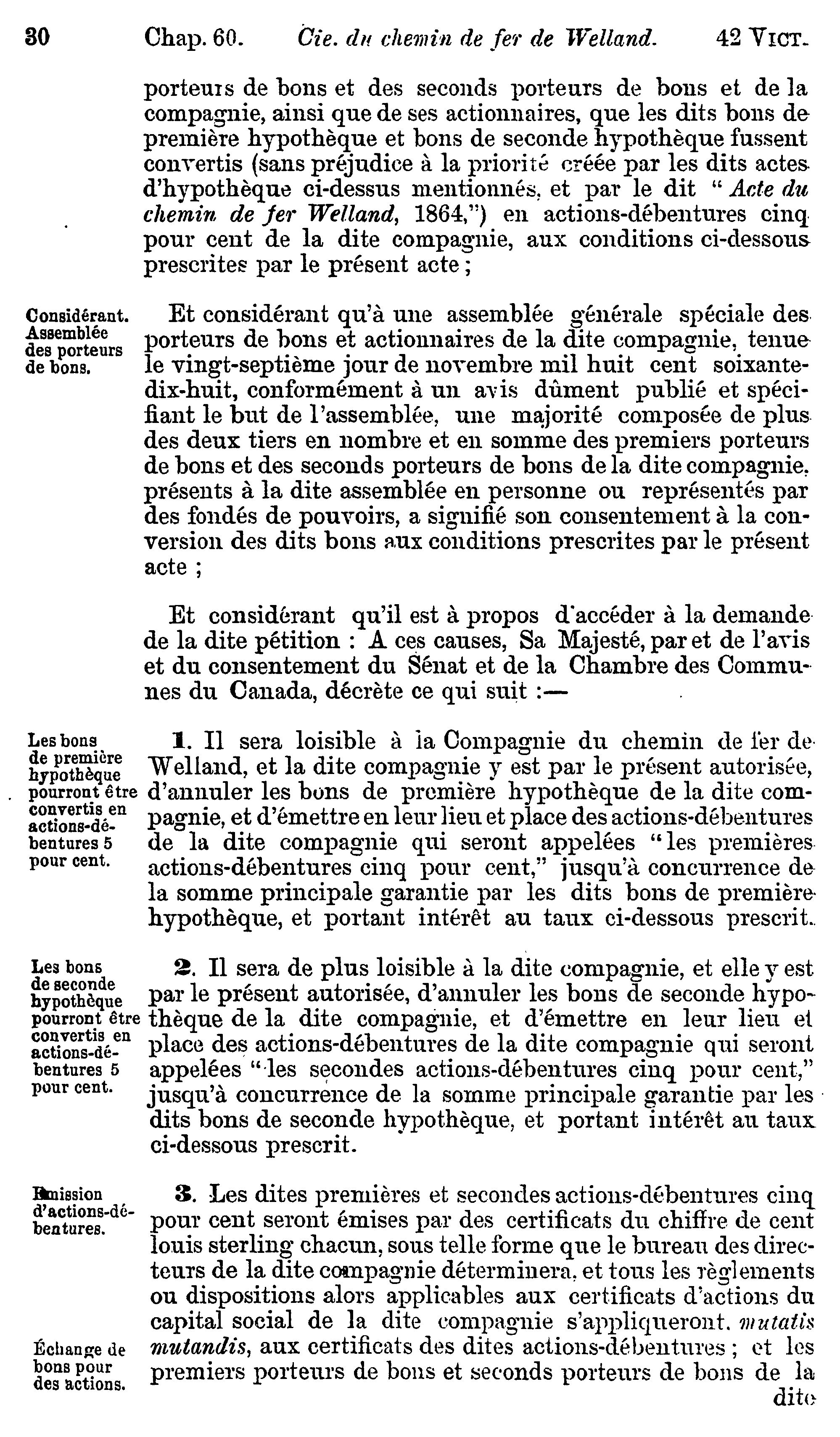 Actes du parlement de la puissance du Canada passés dans la quarante-deuxième année du règne de Sa Majesté, la Reine Victoria, et dans la première session du quatrième parlement : commencée et tenue à Ottawa, le treizième jour de février, et fermée par prorogation le quinzième jour de mai 1879 : actes privés et locaux : 1879 (ptie 2) (Actes 52-79)