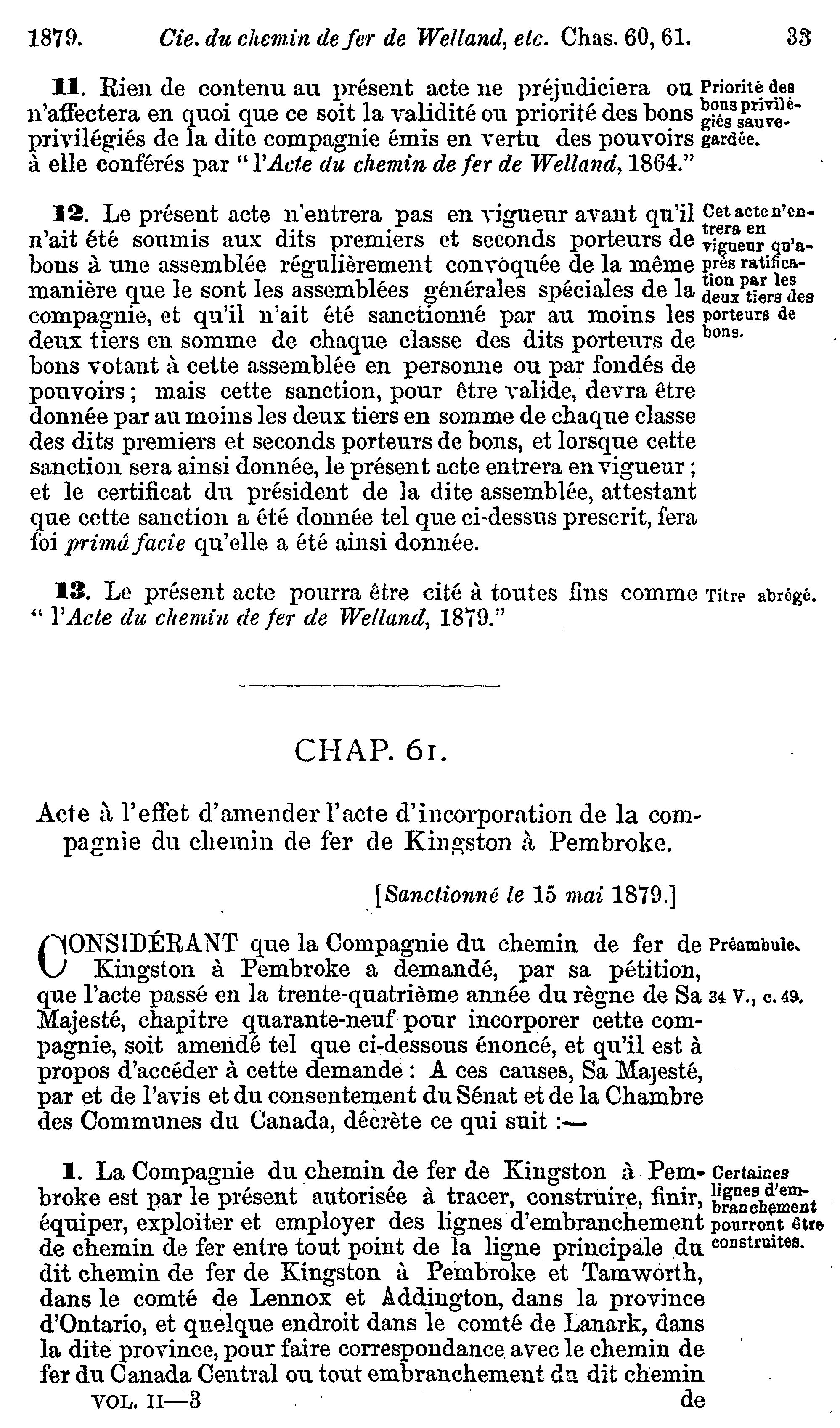 Actes du Parlement de la puissance du Canada : Actes du parlement de la puissance du Canada passés dans la quarante-deuxième année du règne de Sa Majesté, la Reine Victoria, et dans la première session du quatrième parlement : commencée et tenue à Ottawa, le treizième jour de février, et fermée par prorogation le quinzième jour de mai 1879 : actes privés et locaux : 1879 (ptie 2) (Actes 52-79)