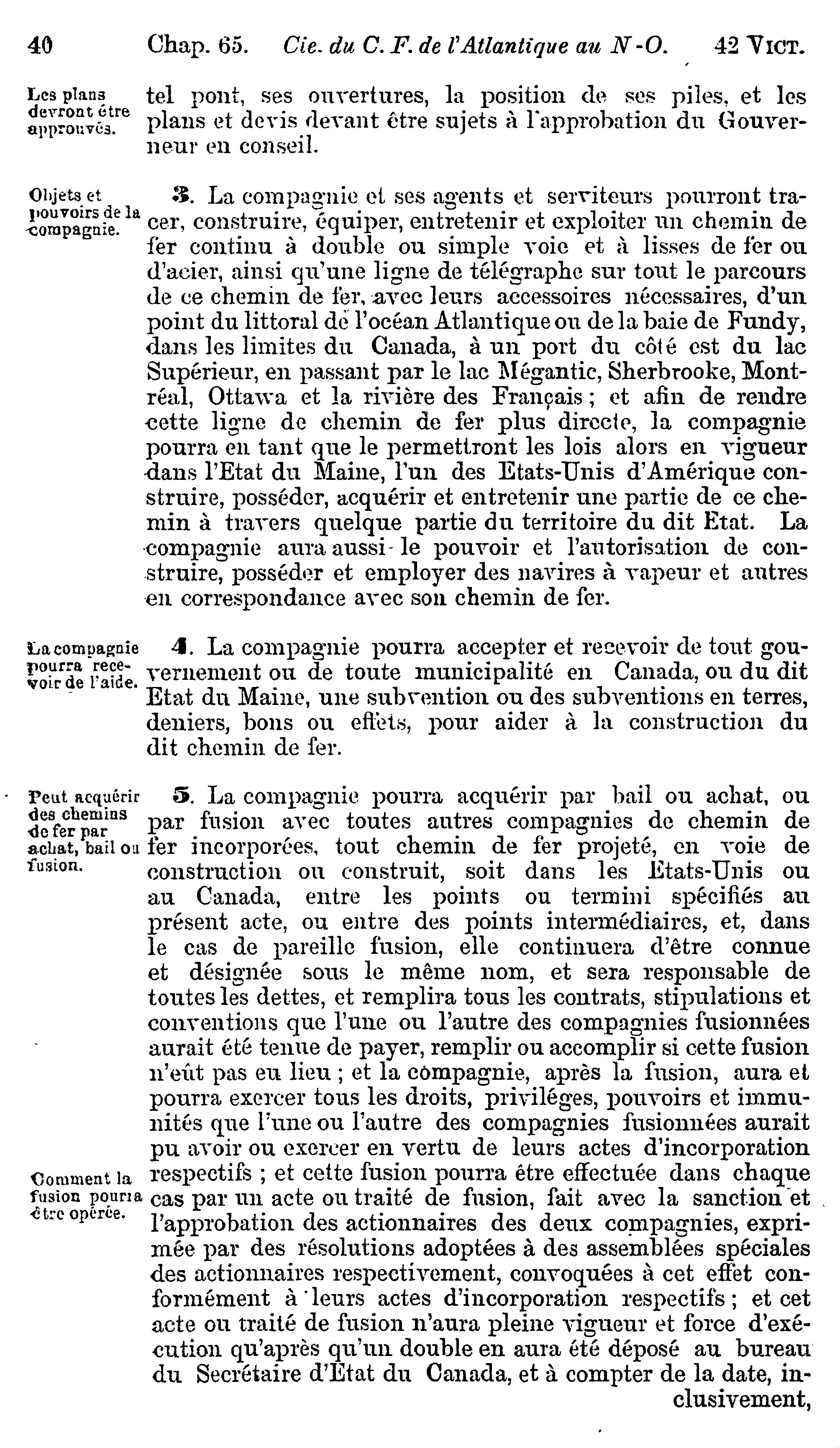 - Actes du parlement de la puissance du Canada passés dans la quarante-deuxième année du règne de Sa Majesté, la Reine Victoria, et dans la première session du quatrième parlement : commencée et tenue à Ottawa, le treizième jour de février, et fermée par prorogation le quinzième jour de mai 1879 : actes privés et locaux : 1879 (ptie 2) (Actes 52-79)