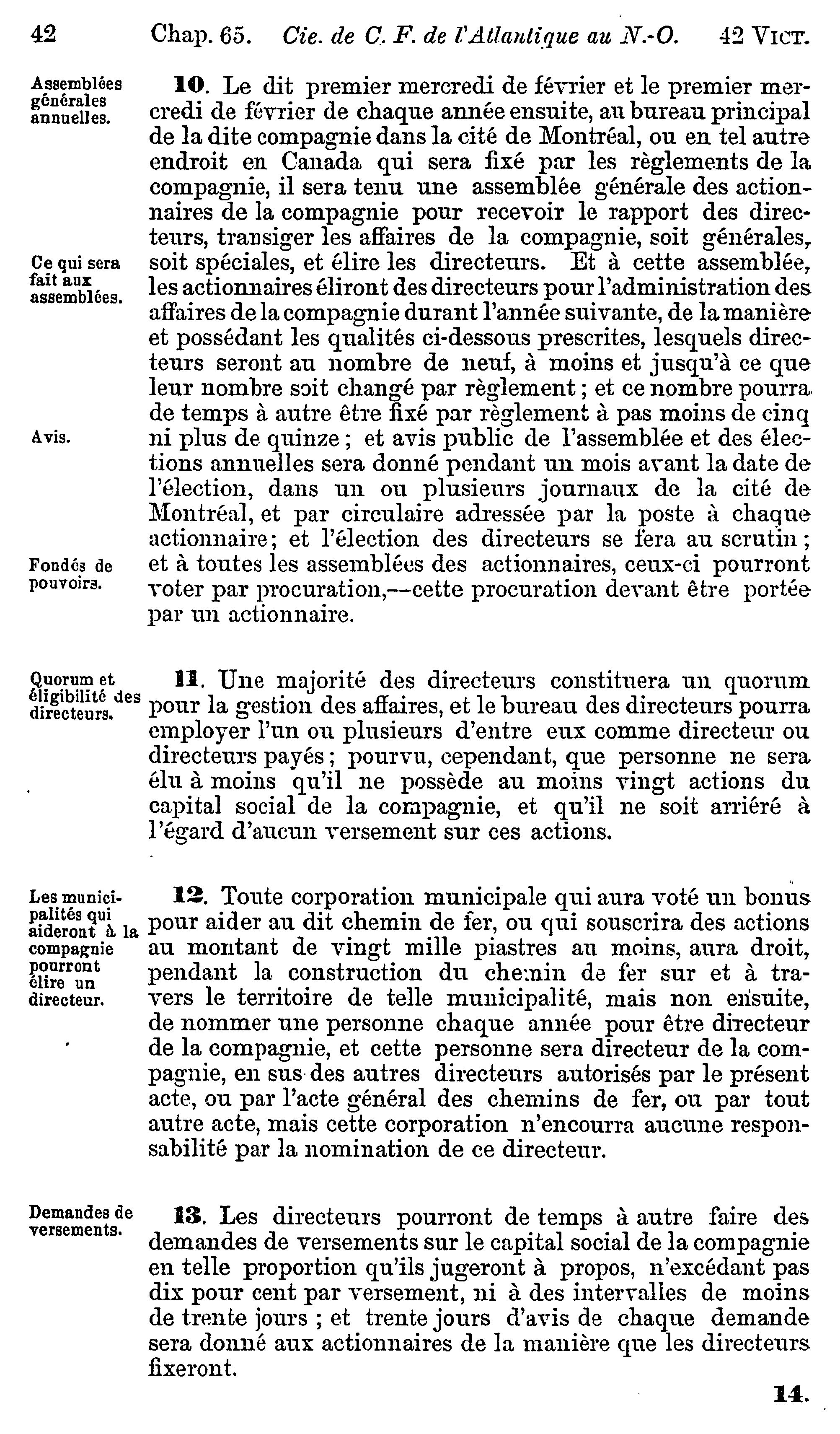 - Actes du parlement de la puissance du Canada passés dans la quarante-deuxième année du règne de Sa Majesté, la Reine Victoria, et dans la première session du quatrième parlement : commencée et tenue à Ottawa, le treizième jour de février, et fermée par prorogation le quinzième jour de mai 1879 : actes privés et locaux : 1879 (ptie 2) (Actes 52-79)