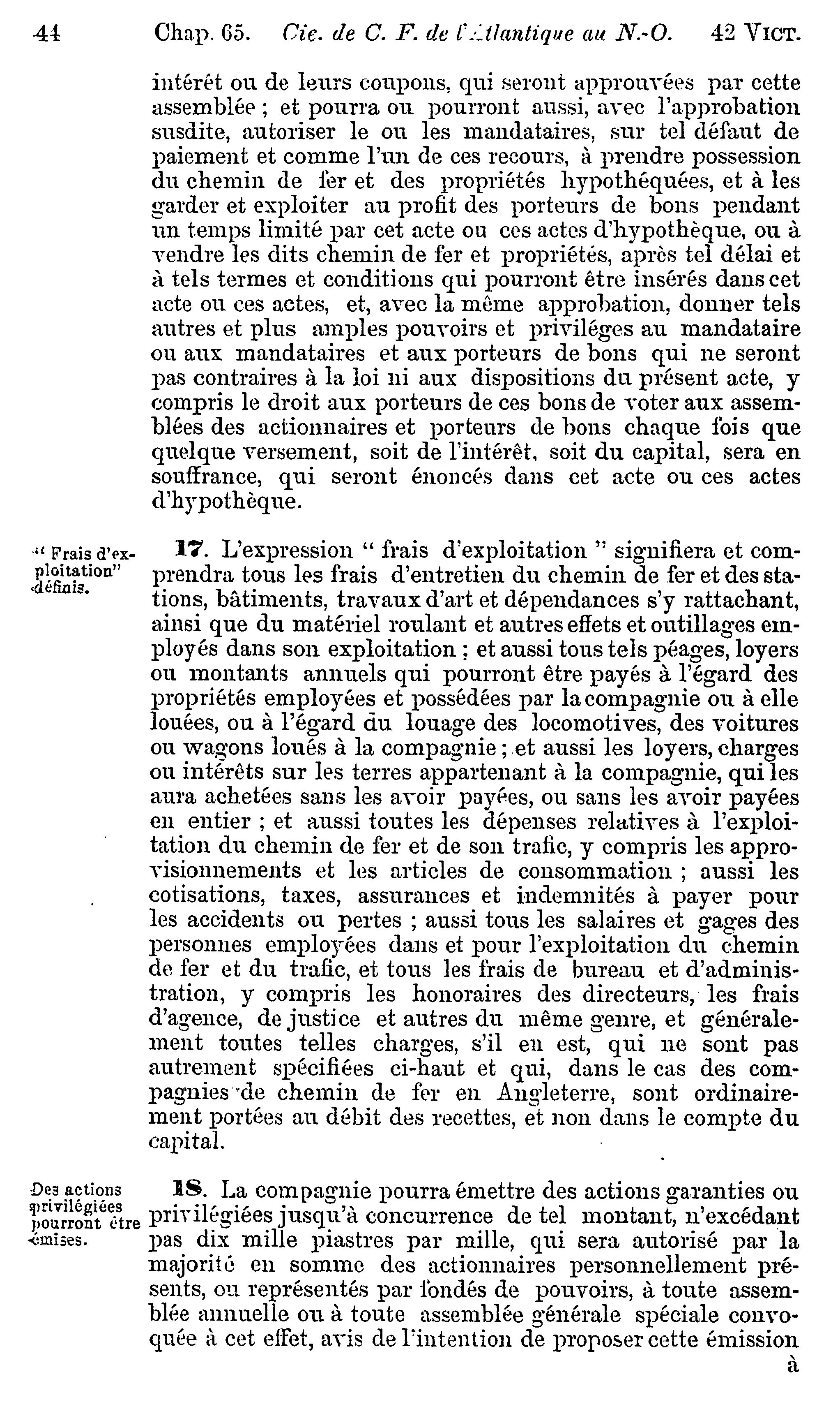 Actes du parlement de la puissance du Canada passés dans la quarante-deuxième année du règne de Sa Majesté, la Reine Victoria, et dans la première session du quatrième parlement : commencée et tenue à Ottawa, le treizième jour de février, et fermée par prorogation le quinzième jour de mai 1879 : actes privés et locaux : 1879 (ptie 2) (Actes 52-79)