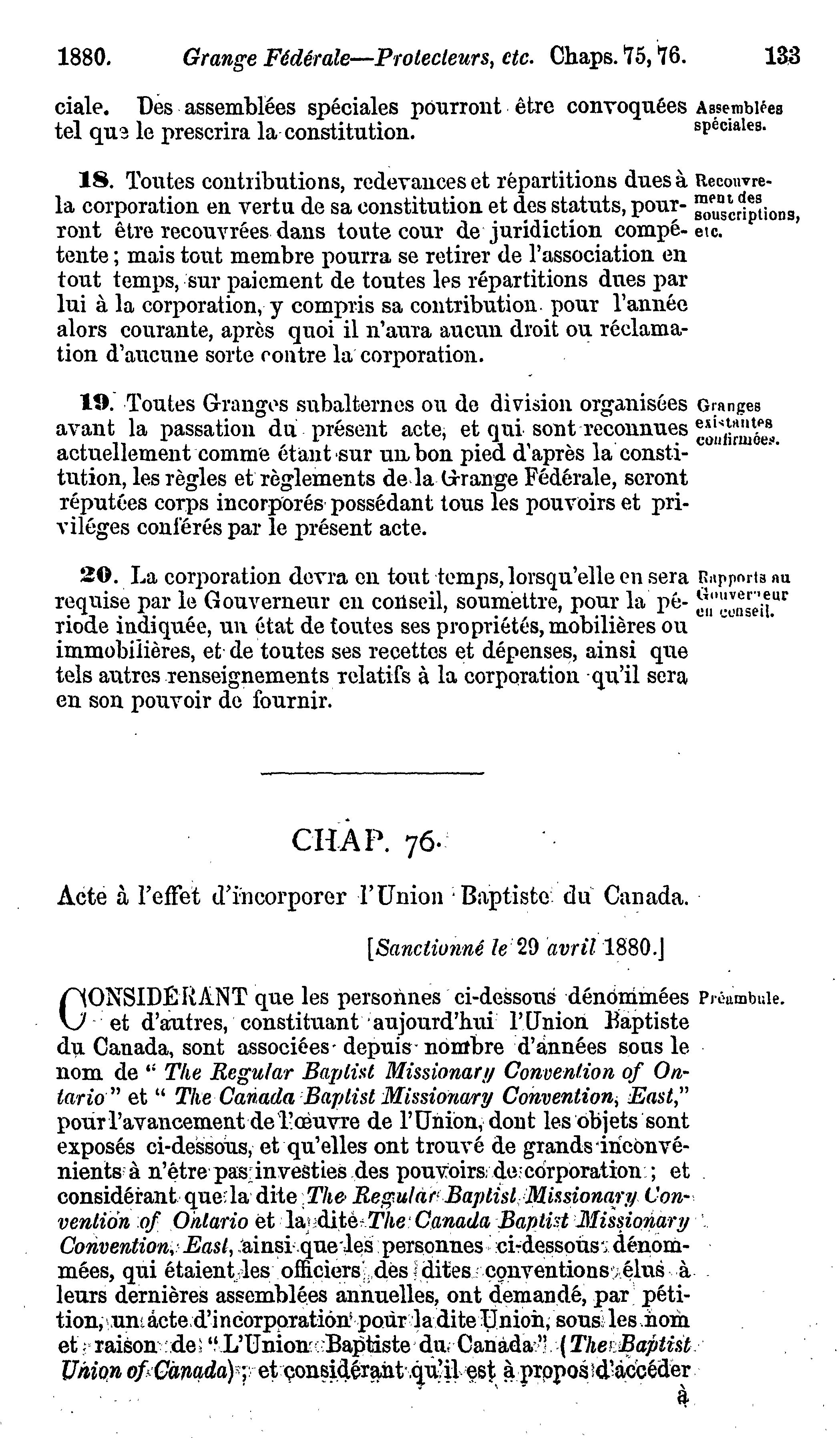 - Actes du parlement de la puissance du Canada passés dans la quarante-troisième année du règne de Sa Majesté, la Reine Victoria, et dans la deuxième session du quatrième parlement : commencée et tenue à Ottawa, le douzième jour de février, et fermée par prorogation le septième jour de mai 1880 : actes locaux et privés : 1880 (ptie 2) (Actes 44-76)