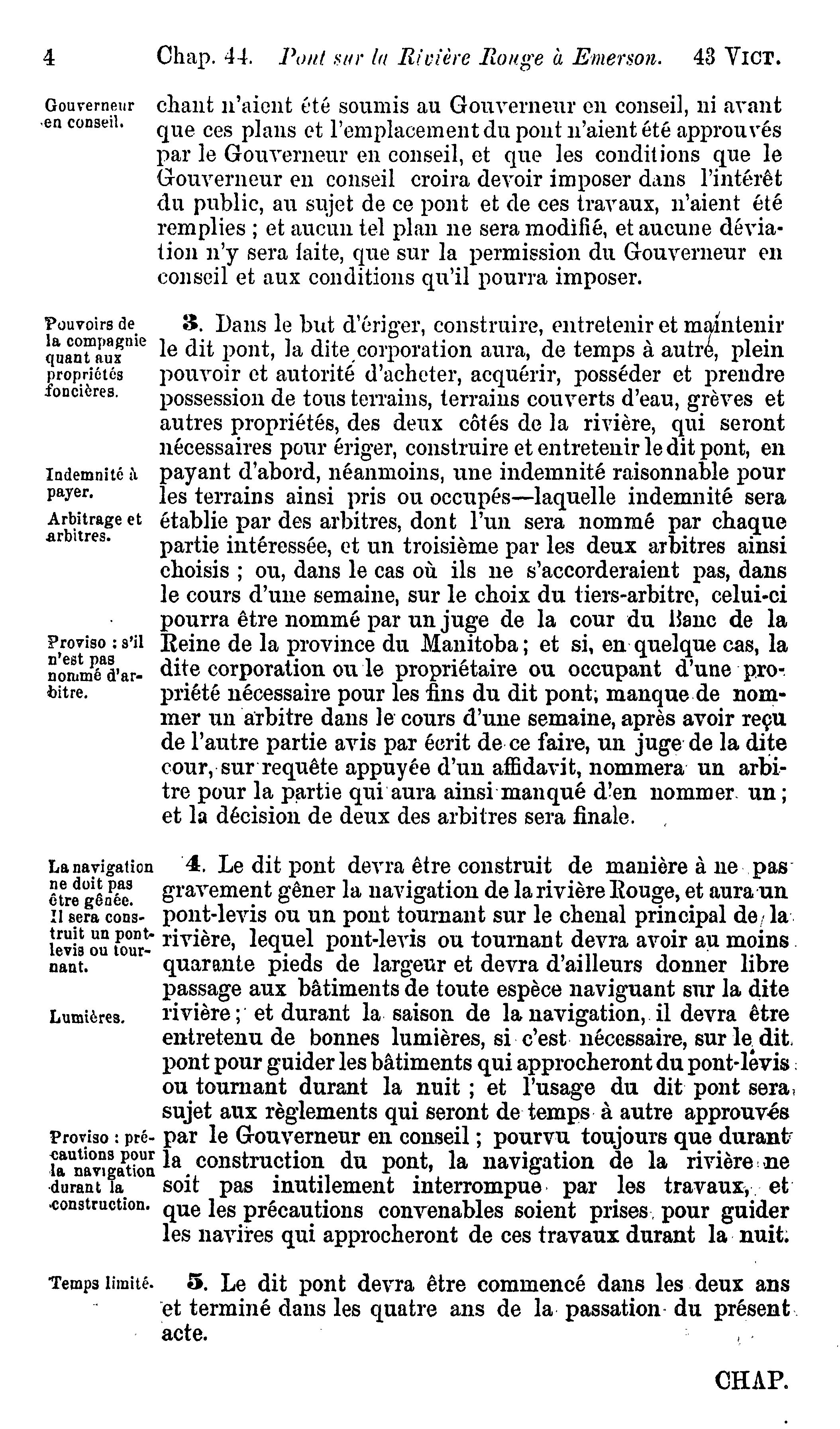 - Actes du parlement de la puissance du Canada passés dans la quarante-troisième année du règne de Sa Majesté, la Reine Victoria, et dans la deuxième session du quatrième parlement : commencée et tenue à Ottawa, le douzième jour de février, et fermée par prorogation le septième jour de mai 1880 : actes locaux et privés : 1880 (ptie 2) (Actes 44-76)